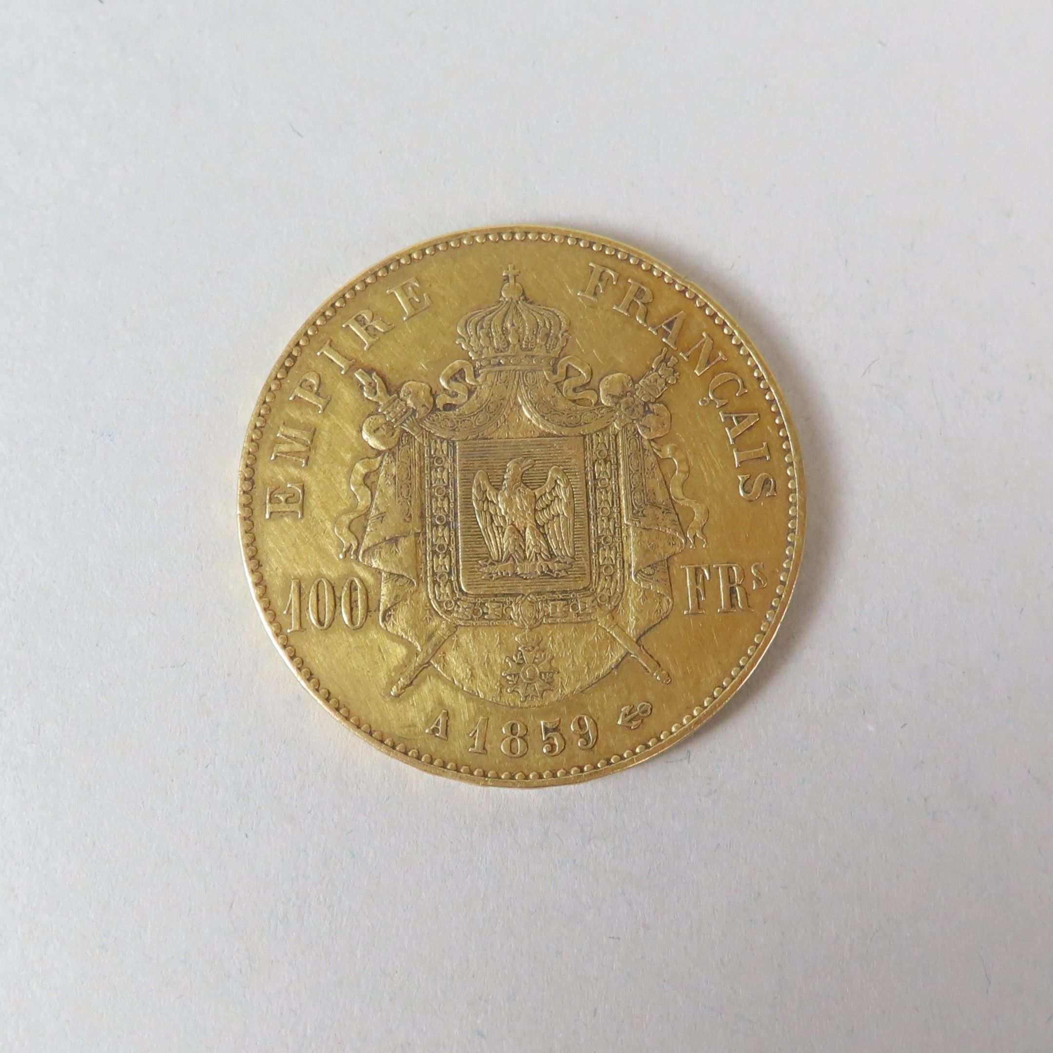 Coin of 100 F gold France (Napoleon, head laurel) of 1859 (w…