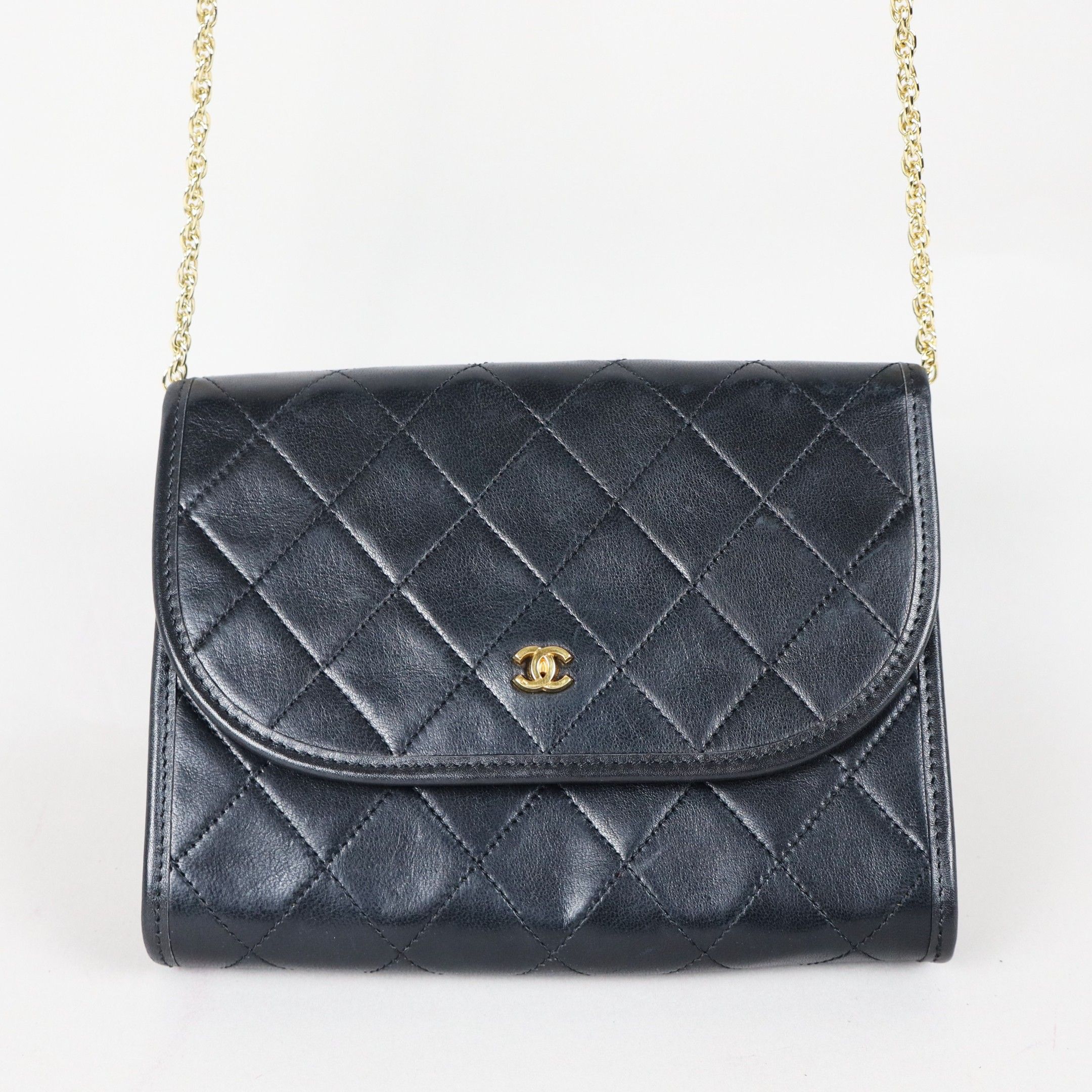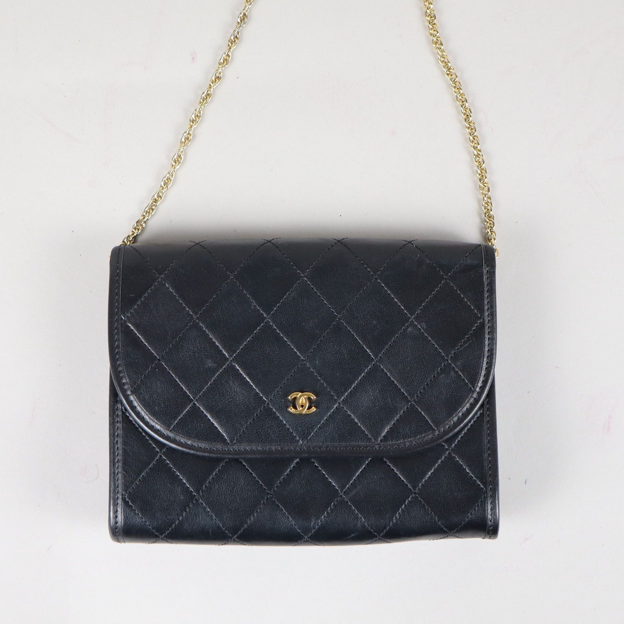 Premium CHANEL. WOC" shoulder bag in quilted black leather; gold-ton…