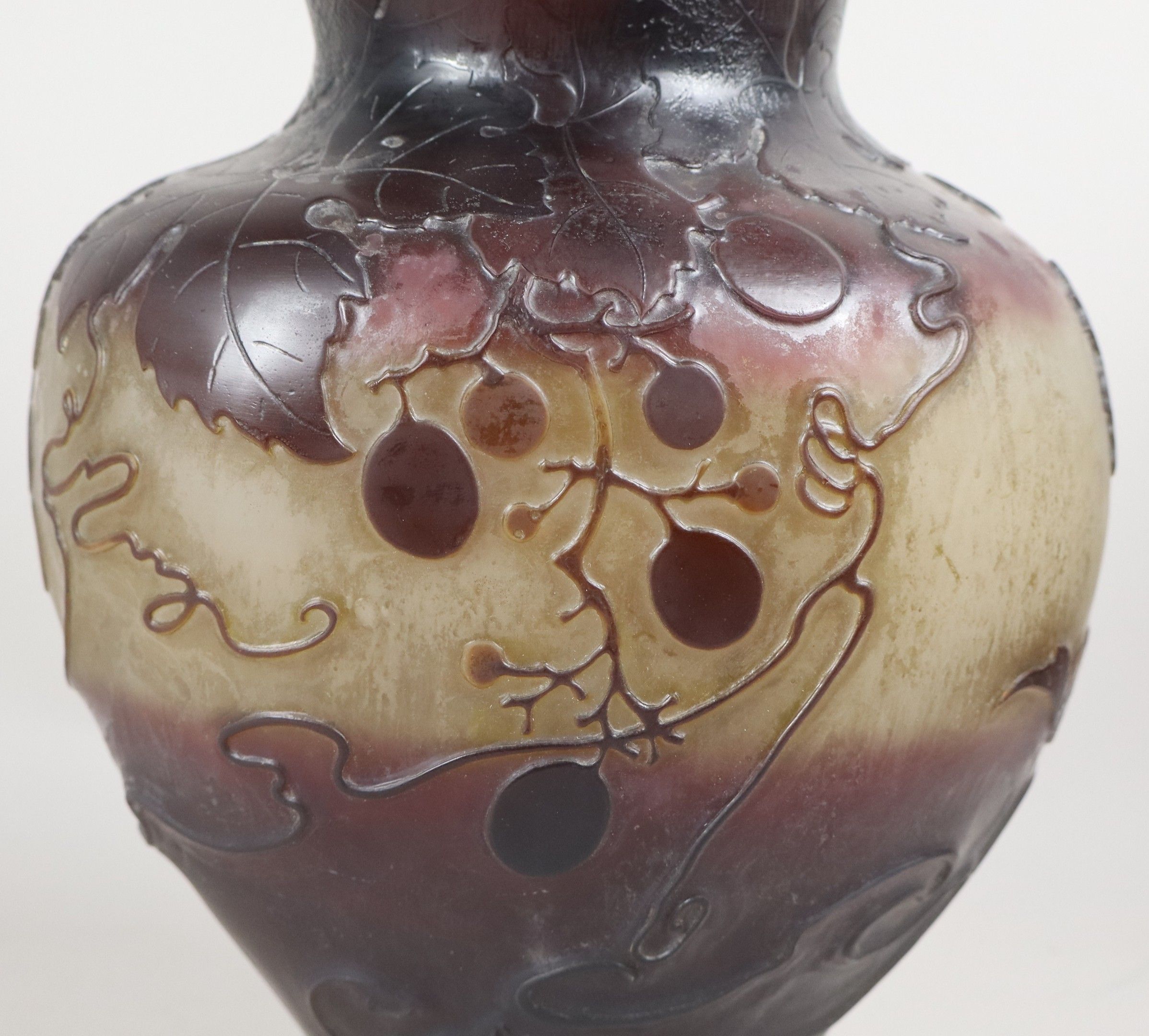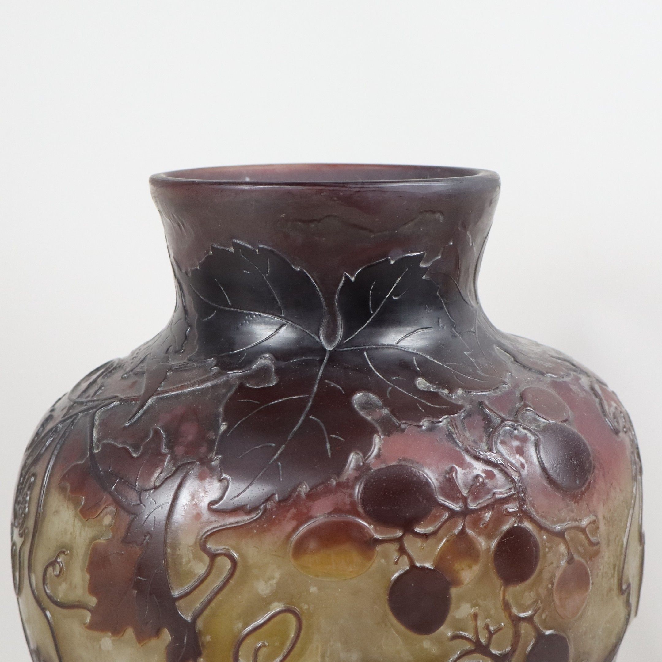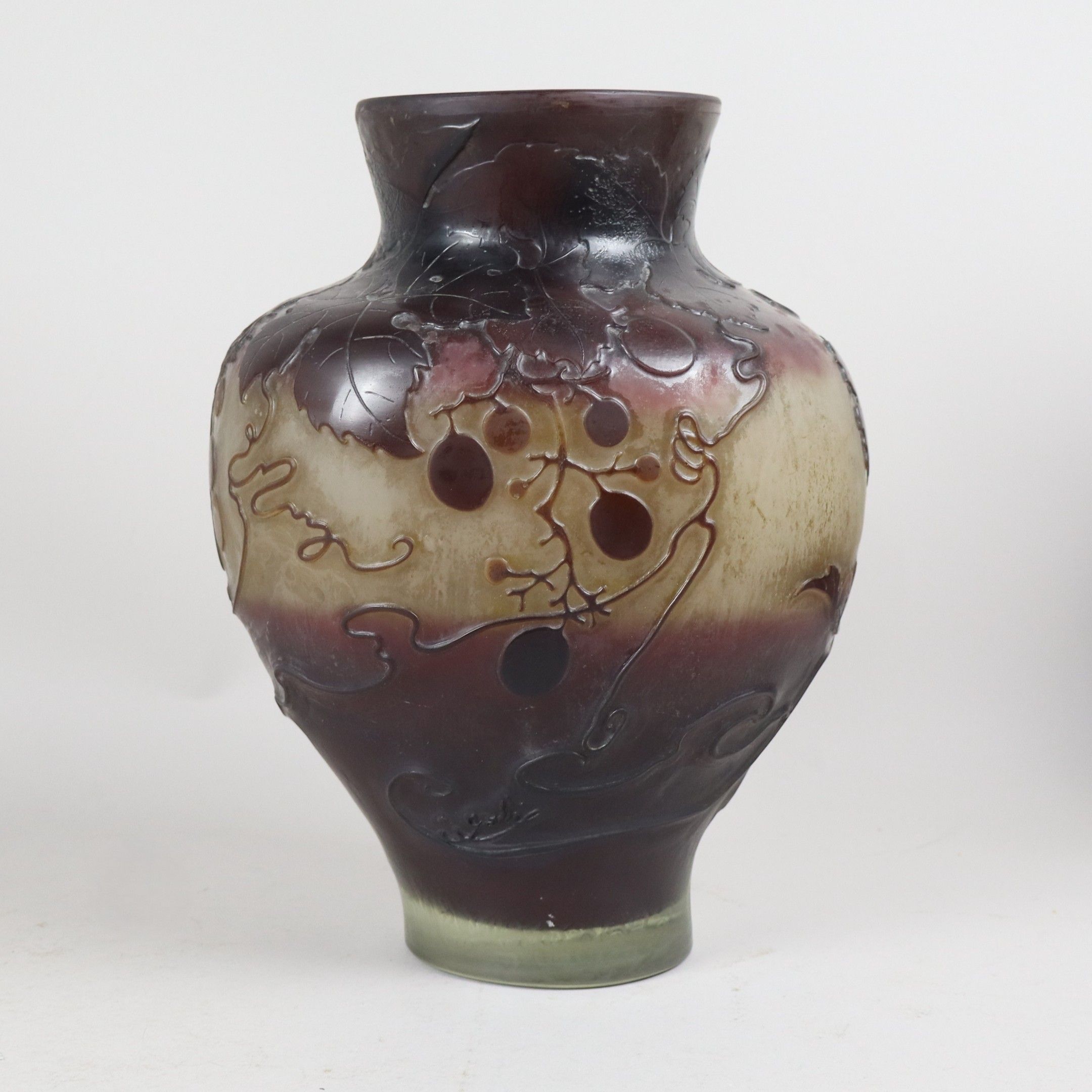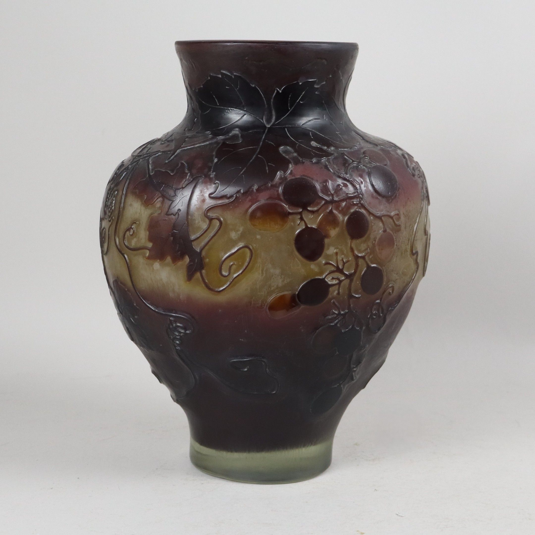 Establishment GALLE. Vase with a slightly flared neck in multi-layered glass with acid-etched decoration of vine shoots. Signed with a star. Early 20th century. Height 28.5 cm.