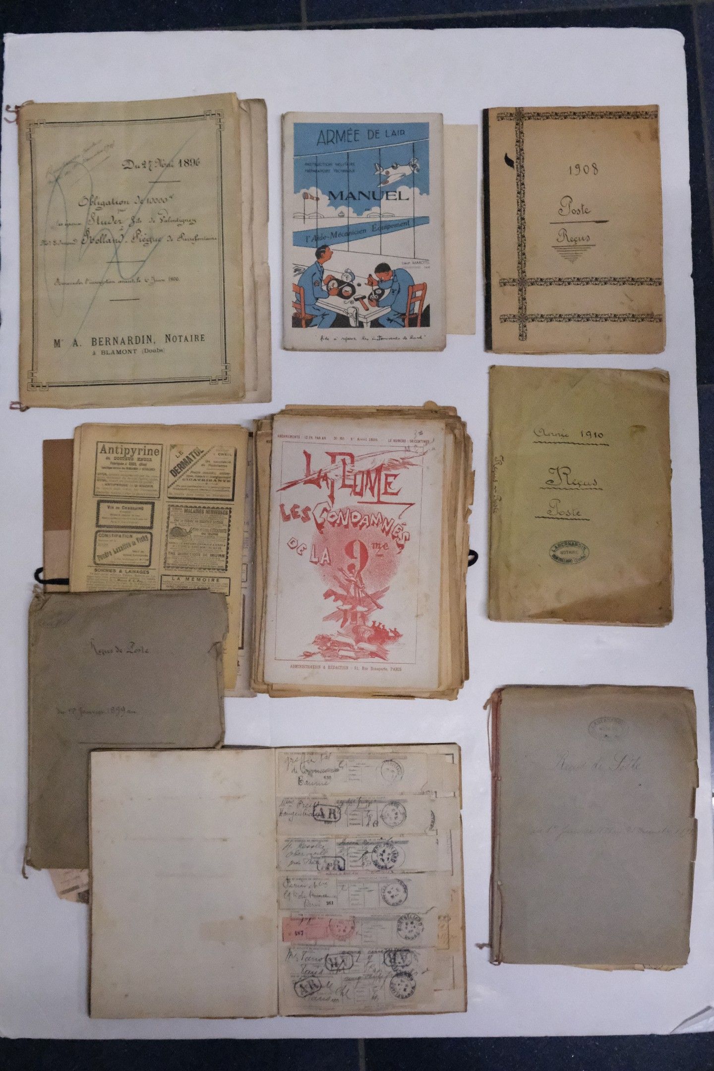 Batch of old magazines including post office receipts, bonds and miscellaneous.