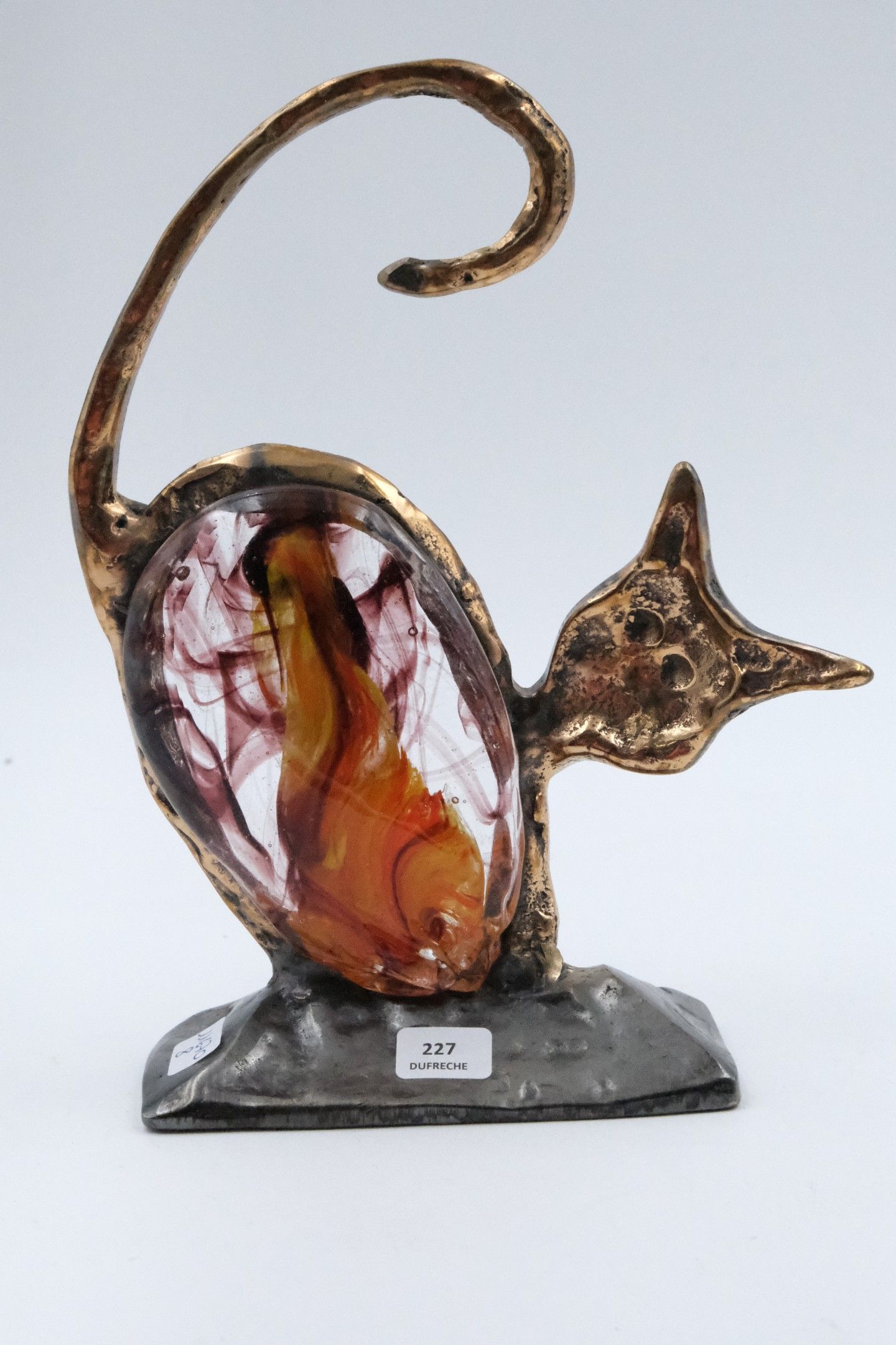 LOHE Yves (born 1947). Subject in bronze and coloured glass paste depicting a cat. 20 X 11.