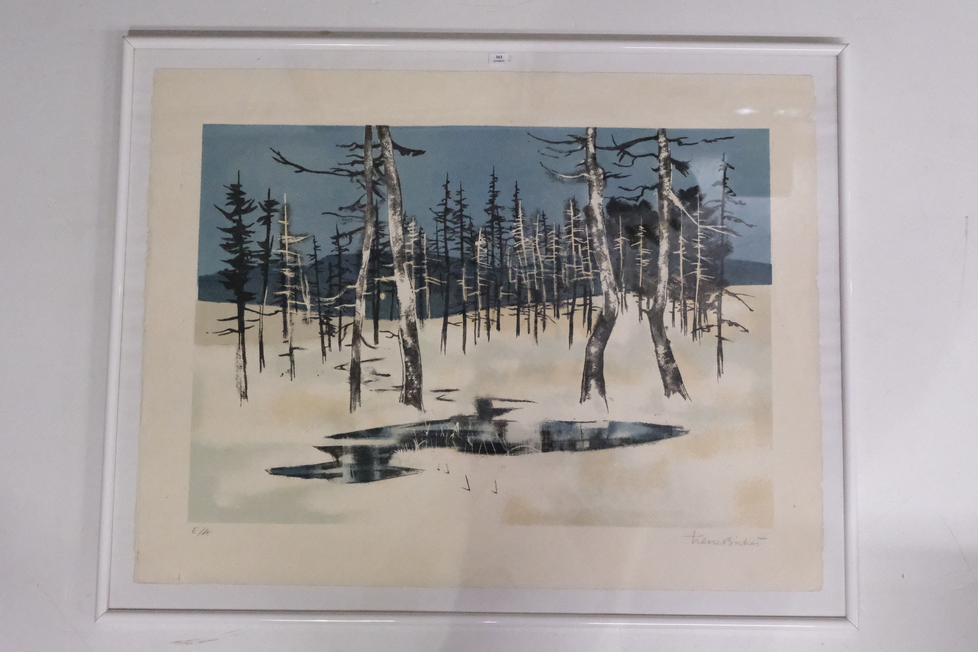 BICHET Pierre (1922-2008). Undergrowth in winter. Lithograph. Signed lower right. Justified EA lower left. 50.5 X 65.5.