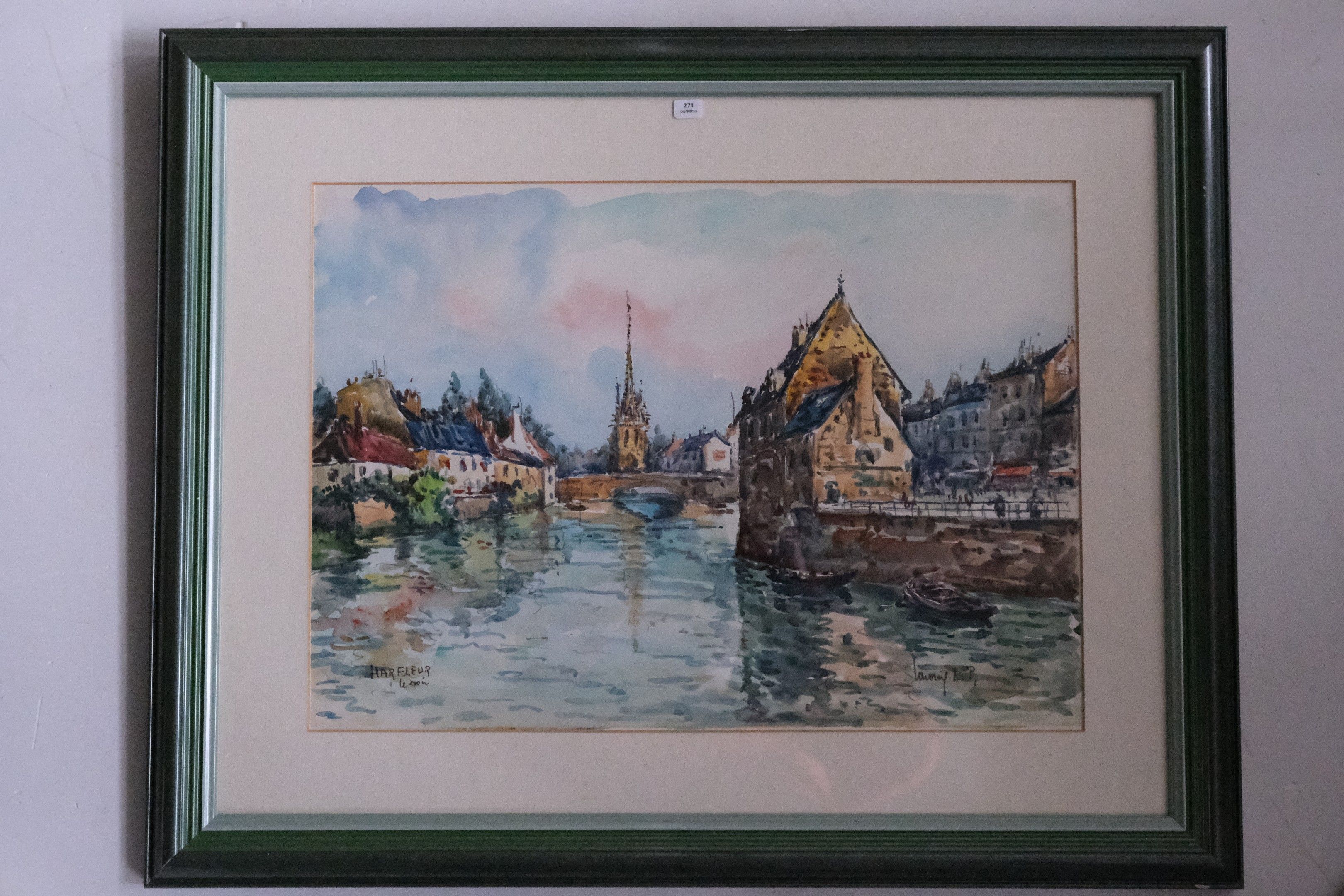 LAVOINE Robert L. P. (1916-1999). Harfleur in the evening. Watercolour. Signed lower right. Titled lower left. 34,5 X 48,5.