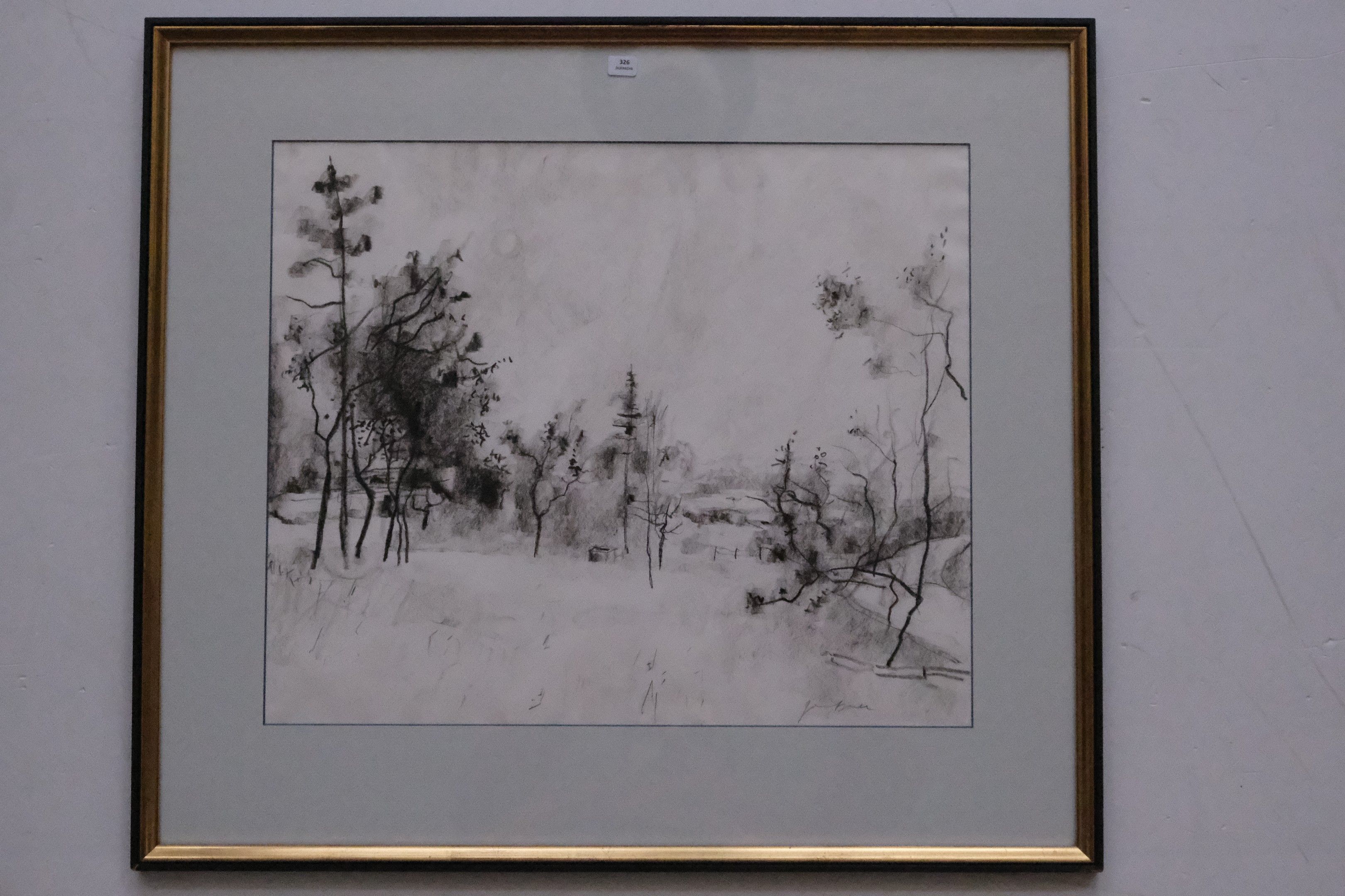 GANTNER Bernard (1928-2018). Snowy Landscape. Pencil drawing. Signed lower right. 36 X 44.