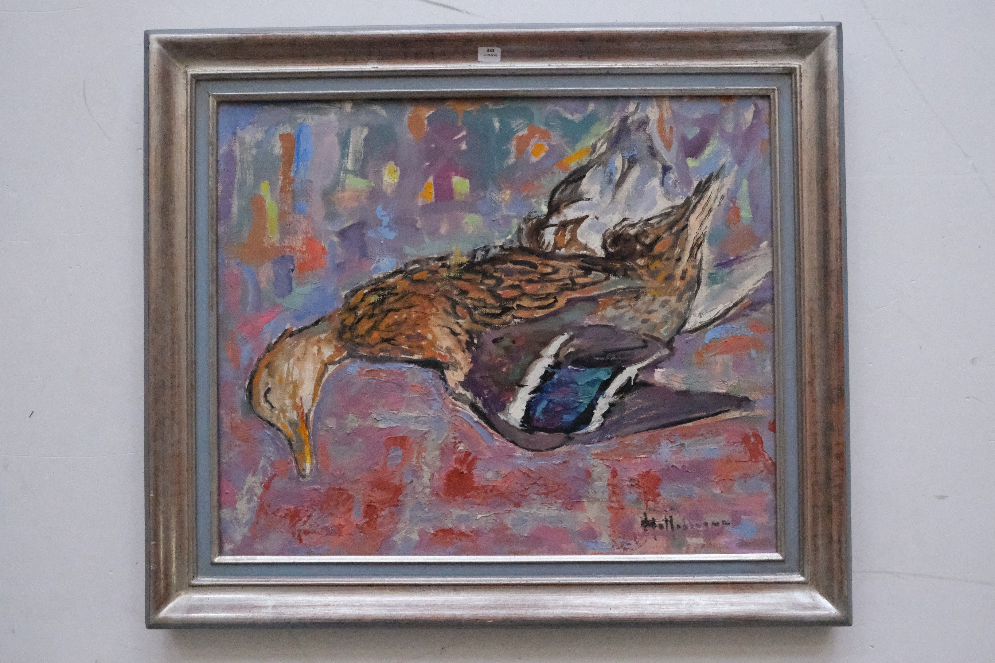HOLLEBECQUE Jean (1914-1983). Still life with a duck. Oil on canvas. Signed lower right. 40 X 47.
