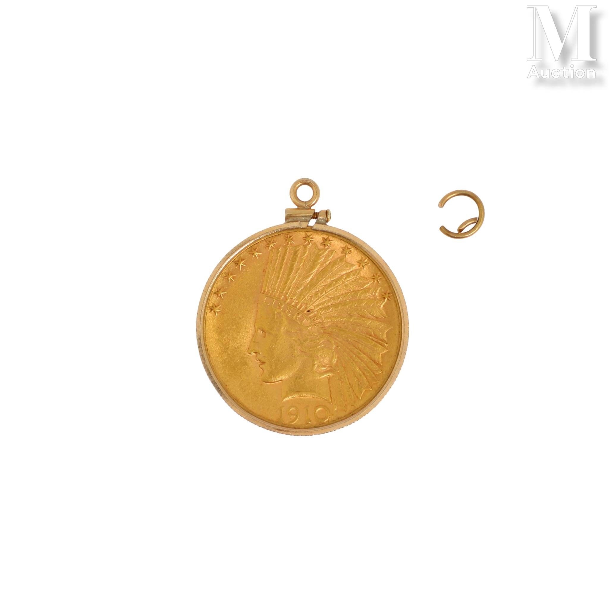 10 American dollar Eagle gold coin (1910) pendant, 14K (585°/°°) gold alloy setting.