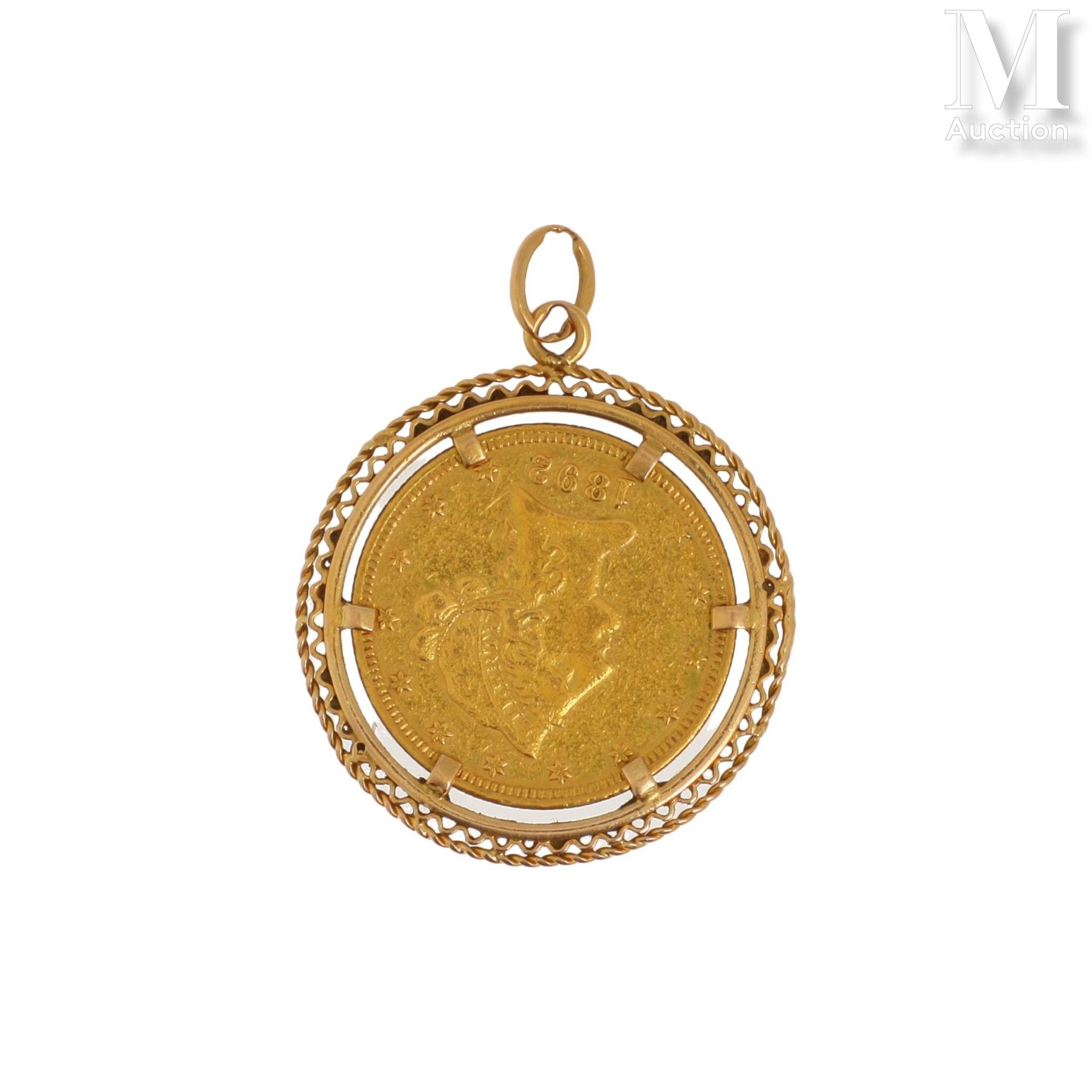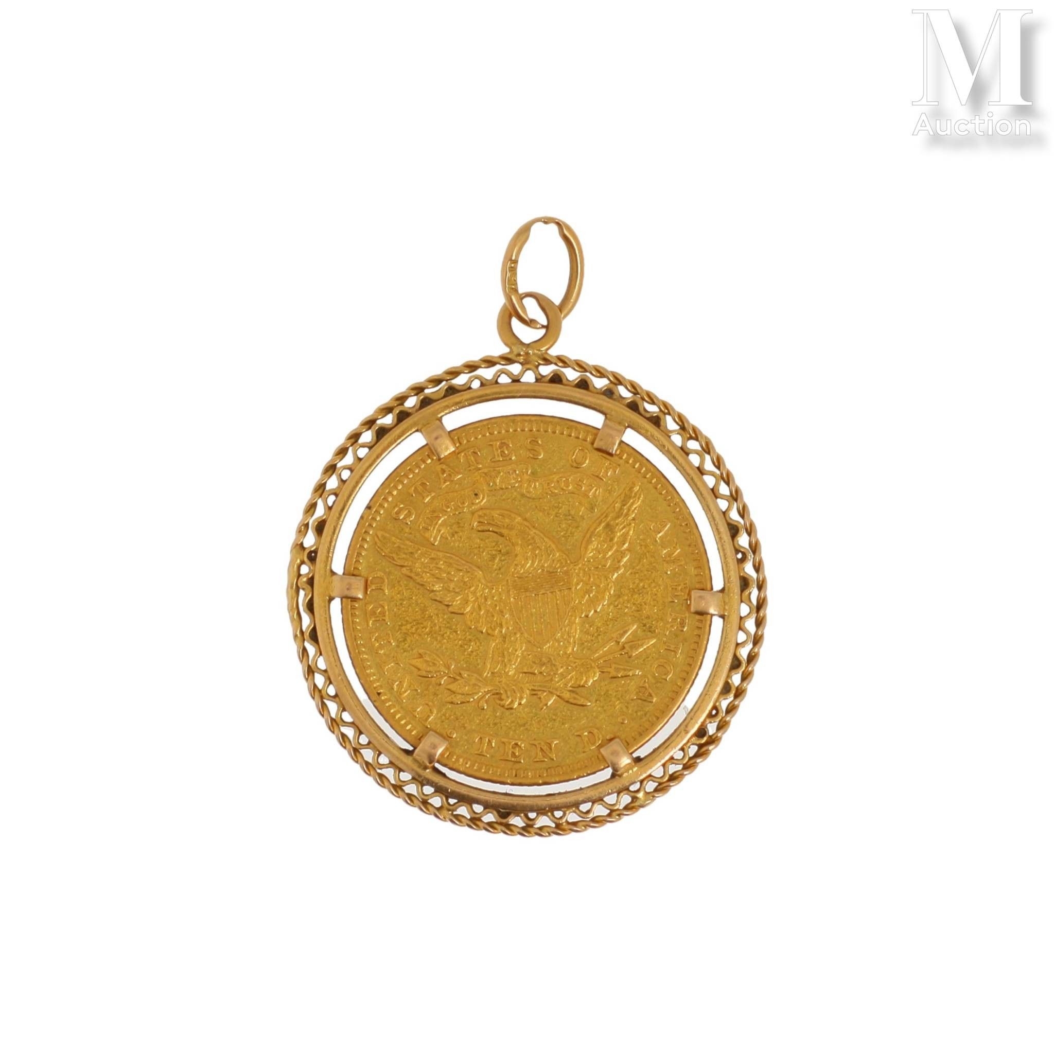10 dollar Liberty gold coin (1892) pendant, set in 18K (750°/°°) yellow gold.
