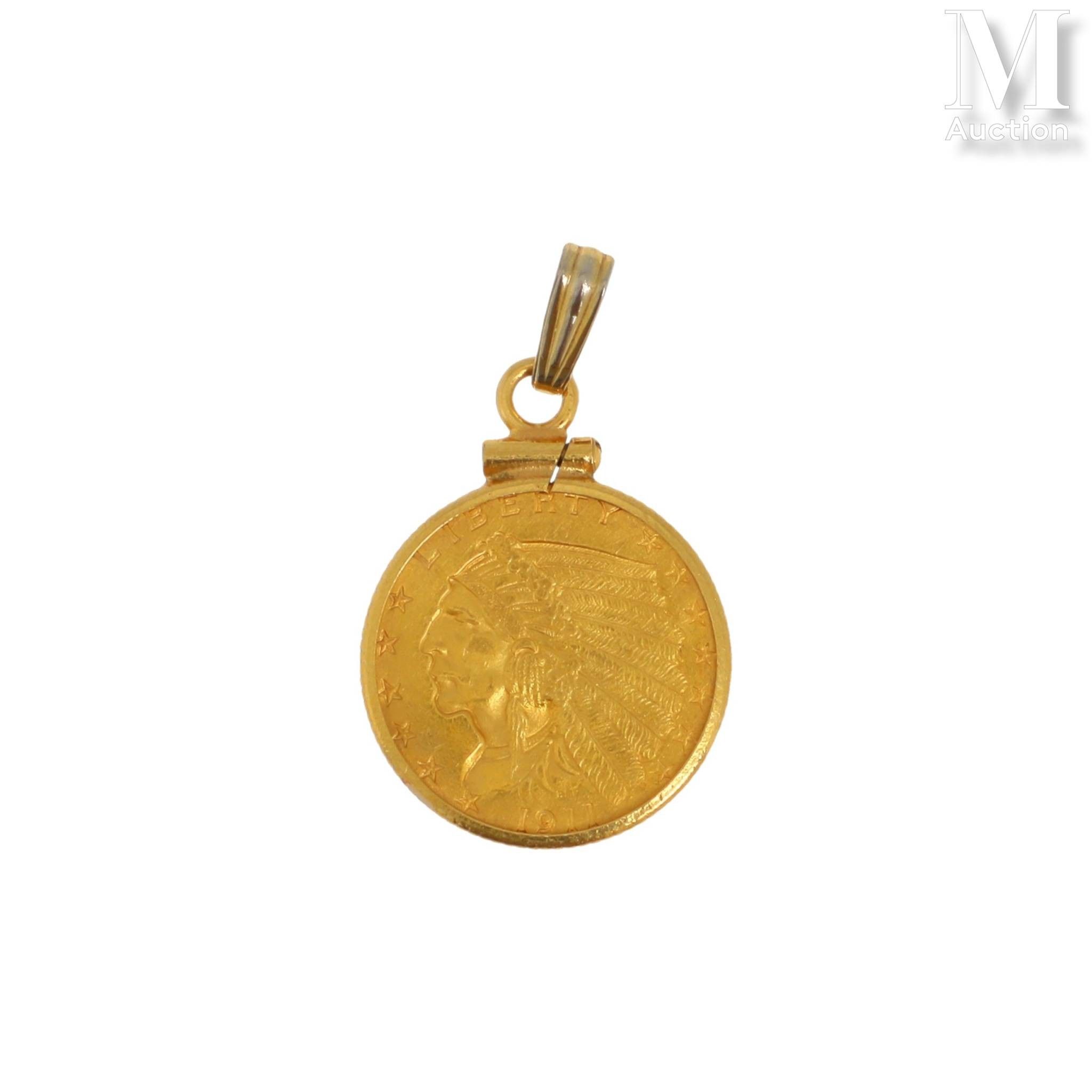 2 1/2 dollar gold American Eagle coin (1911) mounted as a pendant, the setting in 14K (585°/°°) gold alloy and metal.