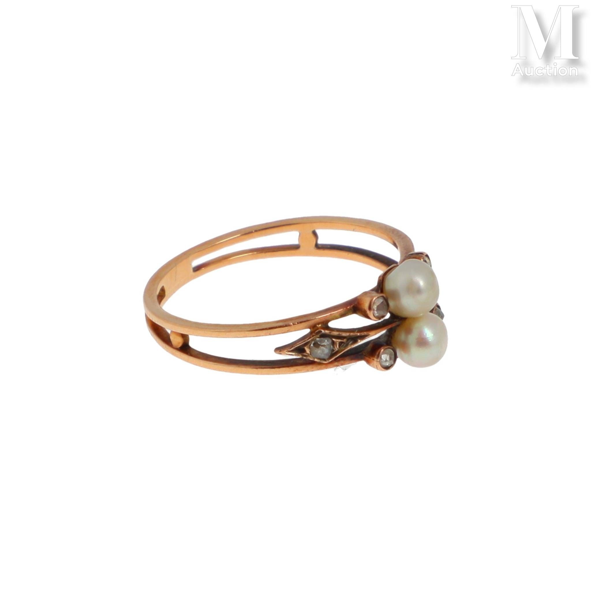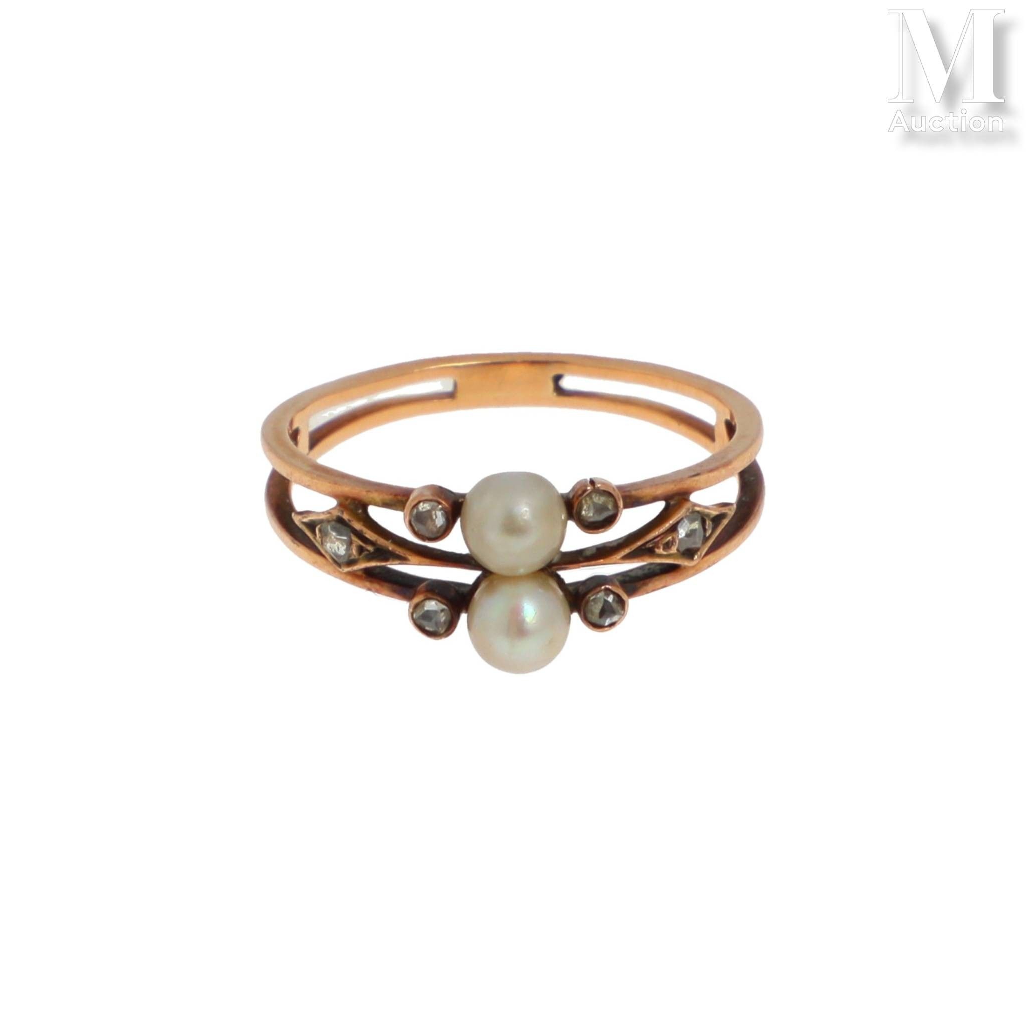 Toi & Moi ring in 18K (750°/°°) pink gold set with two pearls* with small diamond chips.