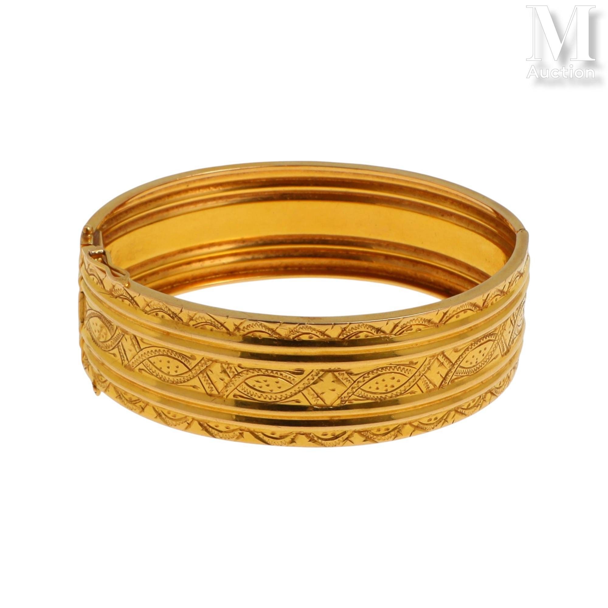 Ribbon bracelet in 18K (750°/°°) yellow gold with openwork and ribbed polonaise mesh, ratchet clasp with two safety eights.