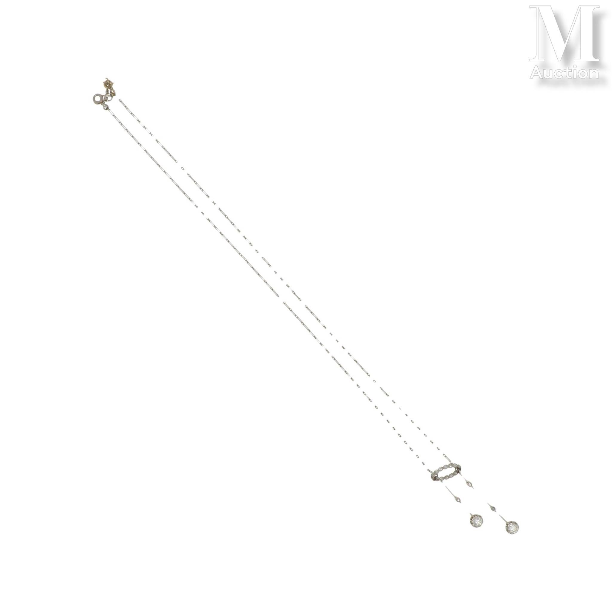Negligee necklace in platinum (950°/°°) with figaro link, set with two old-cut diamonds held by an ellipse motif, safety chain in 18K (750°/°°) white gold.