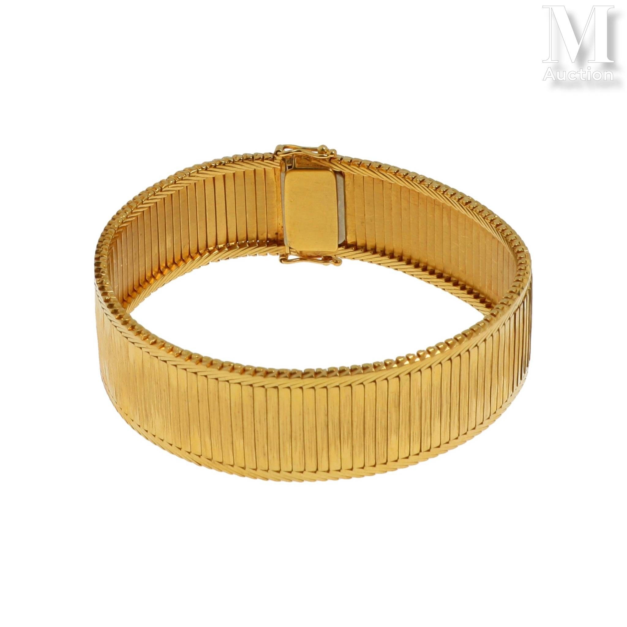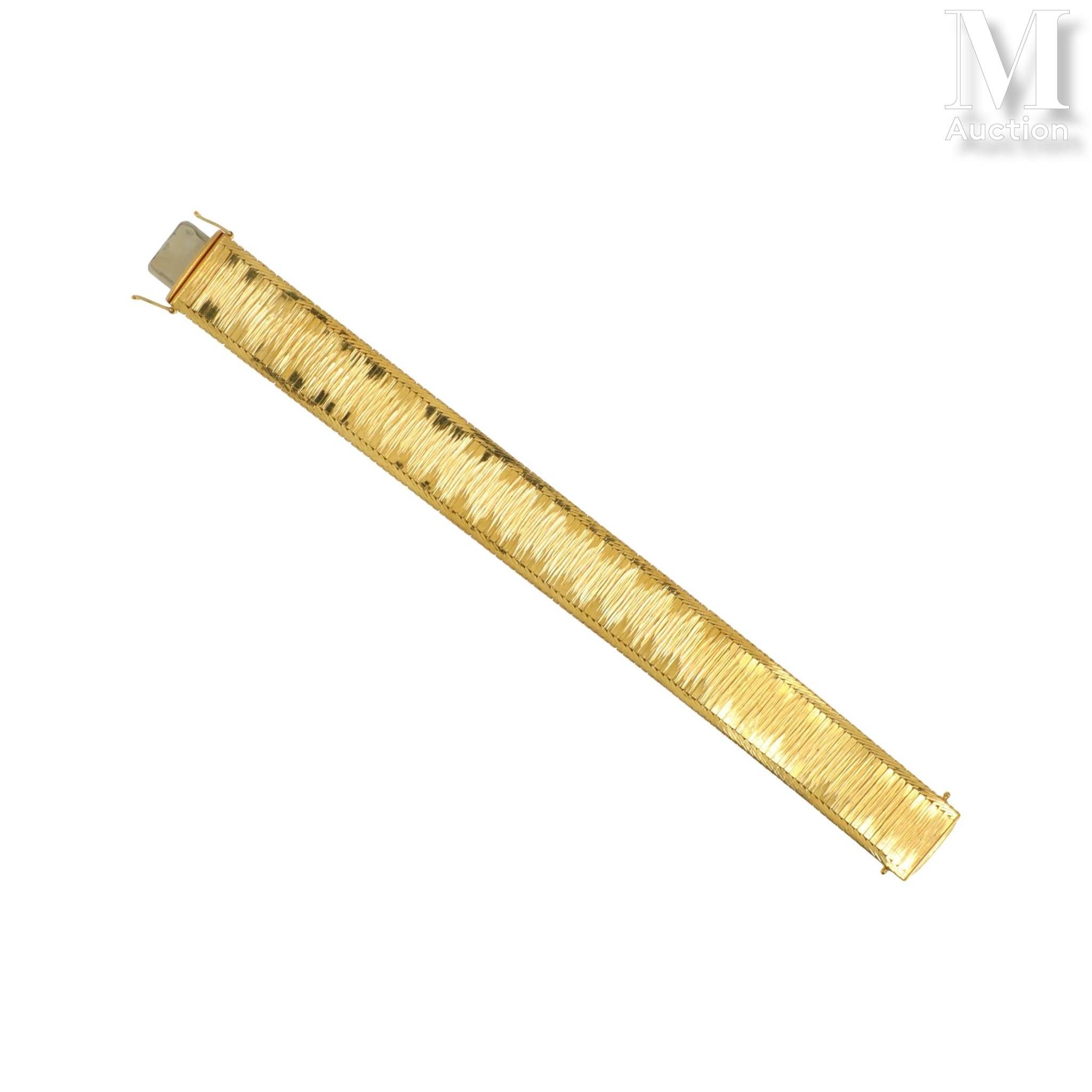 Ribbon bracelet in 18K (750°/°°) yellow gold with chiselled flexible mesh, ratchet clasp with two safety eights.