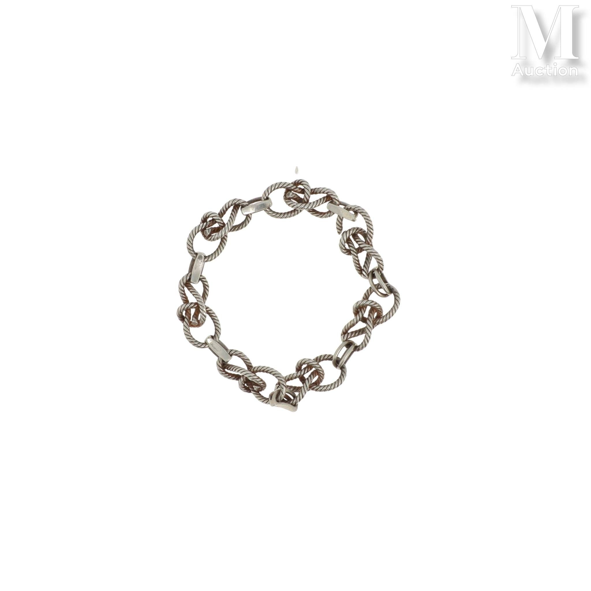 Silver bracelet (800°/°°) with articulated links styling braided knots. French work.