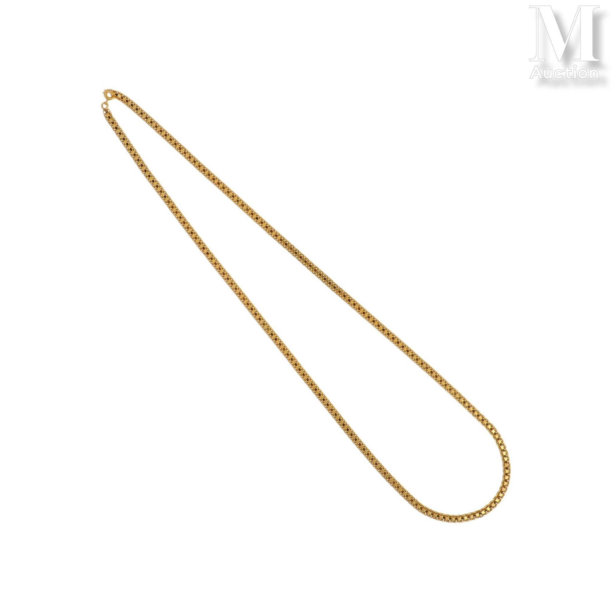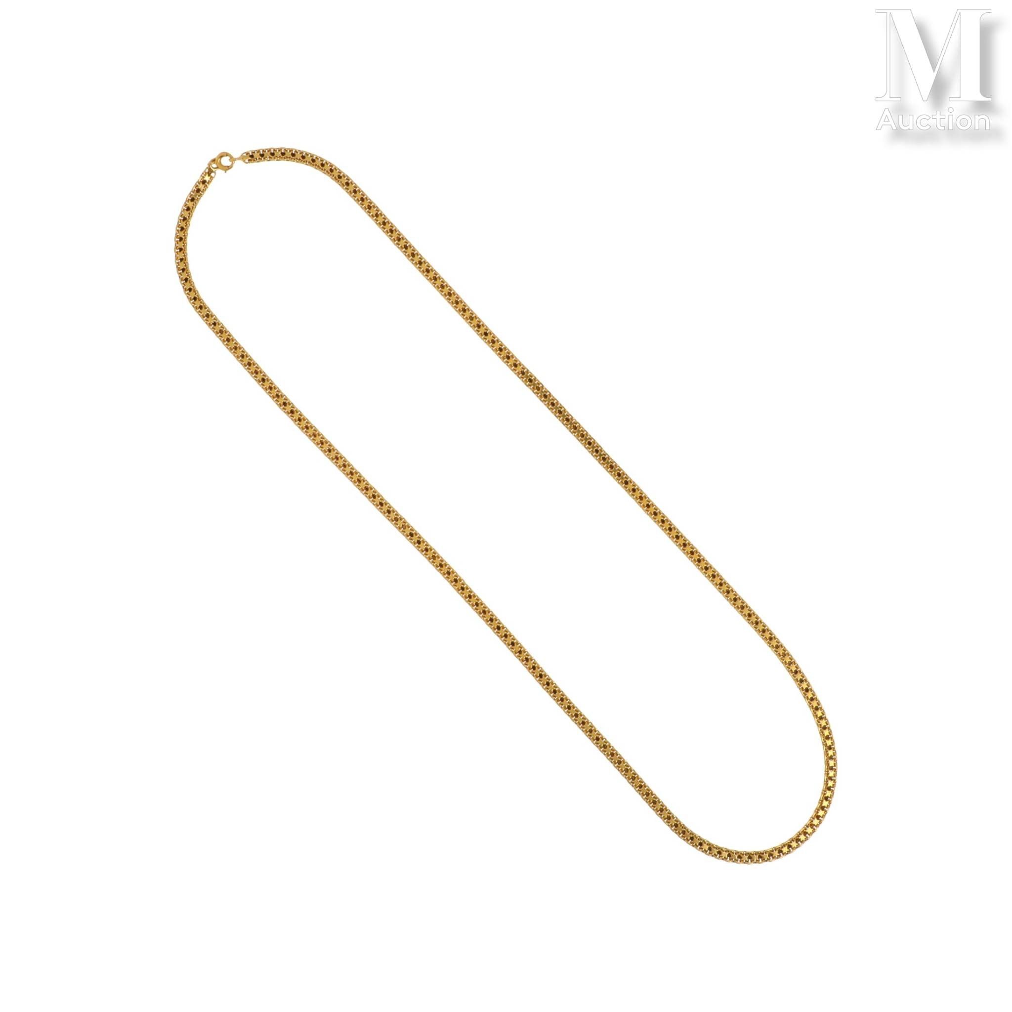 18K (750°/°°) yellow gold plaited chain with spring clasp.