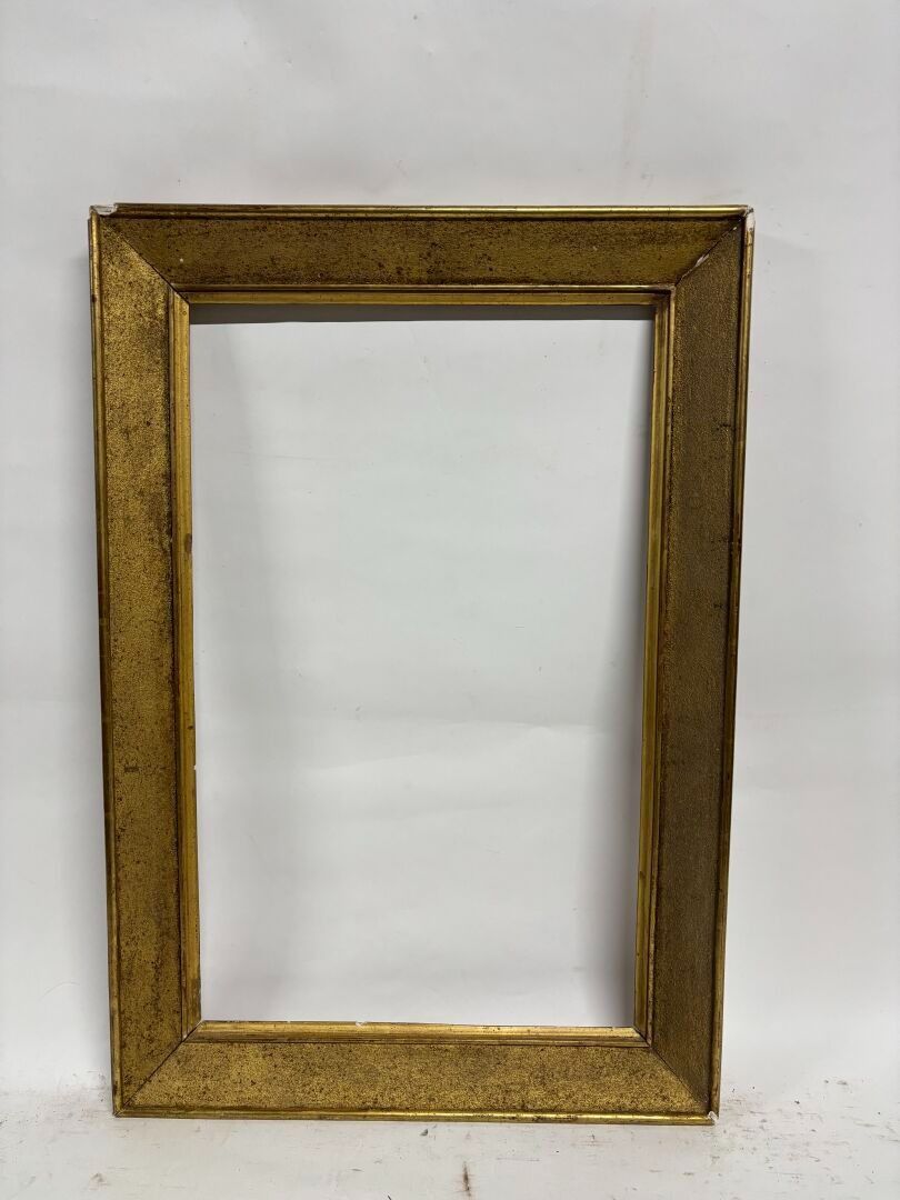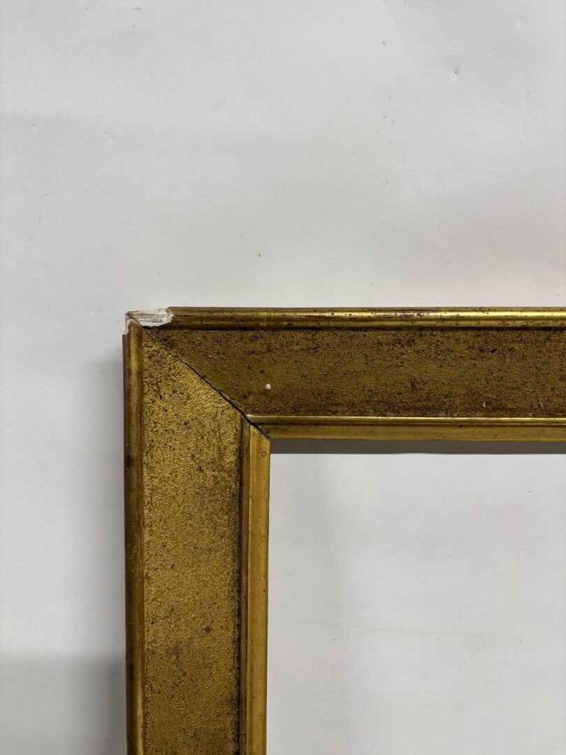 Frame in wood and gilded paste with a sloping profile and sandblasted decoration