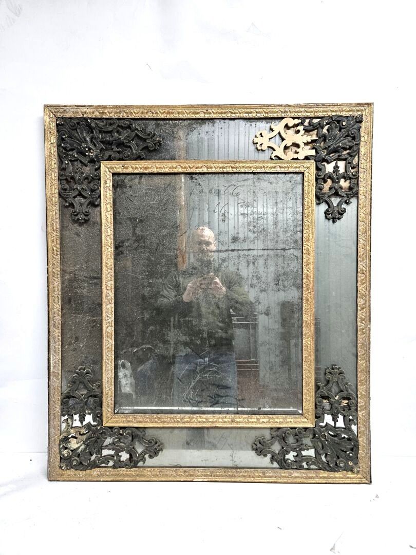 Carved and gilded wood mirror decorated with a frieze of wat…