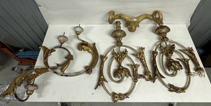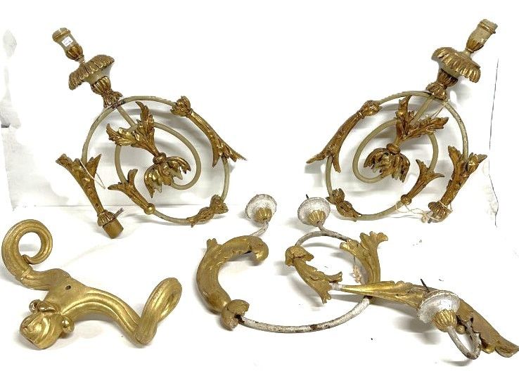 Premium Pair of lacquered metal and gilded wood arm lights decorated…