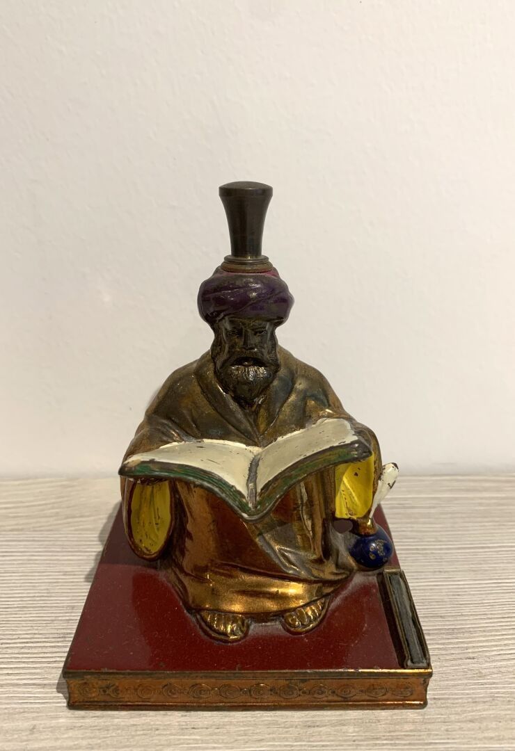 Charming pyrogen in lacquered and gilded rule decorated with a man with turban reading