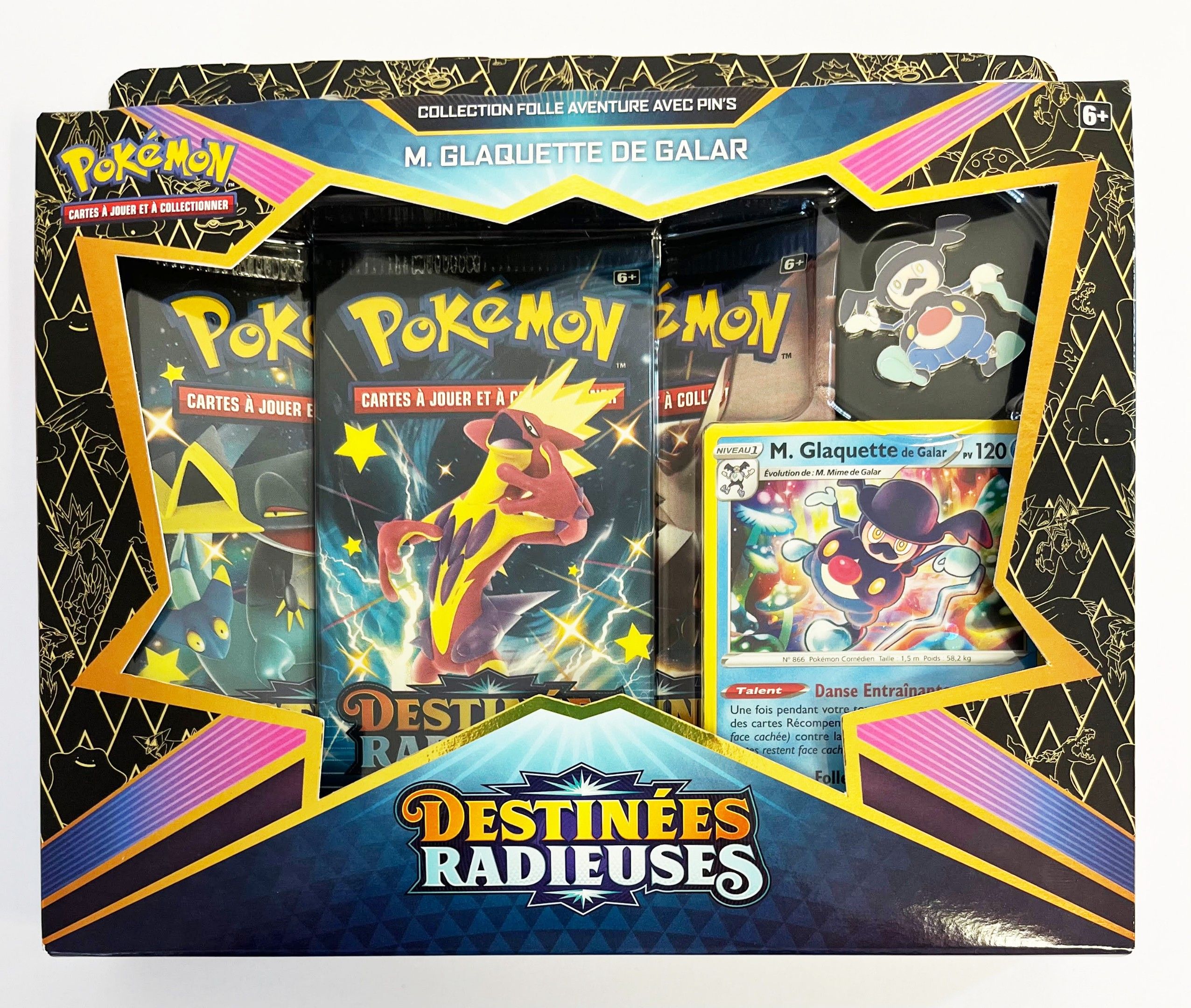 POKEMON. Collection Folle Aventure box set with pins, M. GLAQUETTE DE GALAR, DESTINEES RADIEUSES.