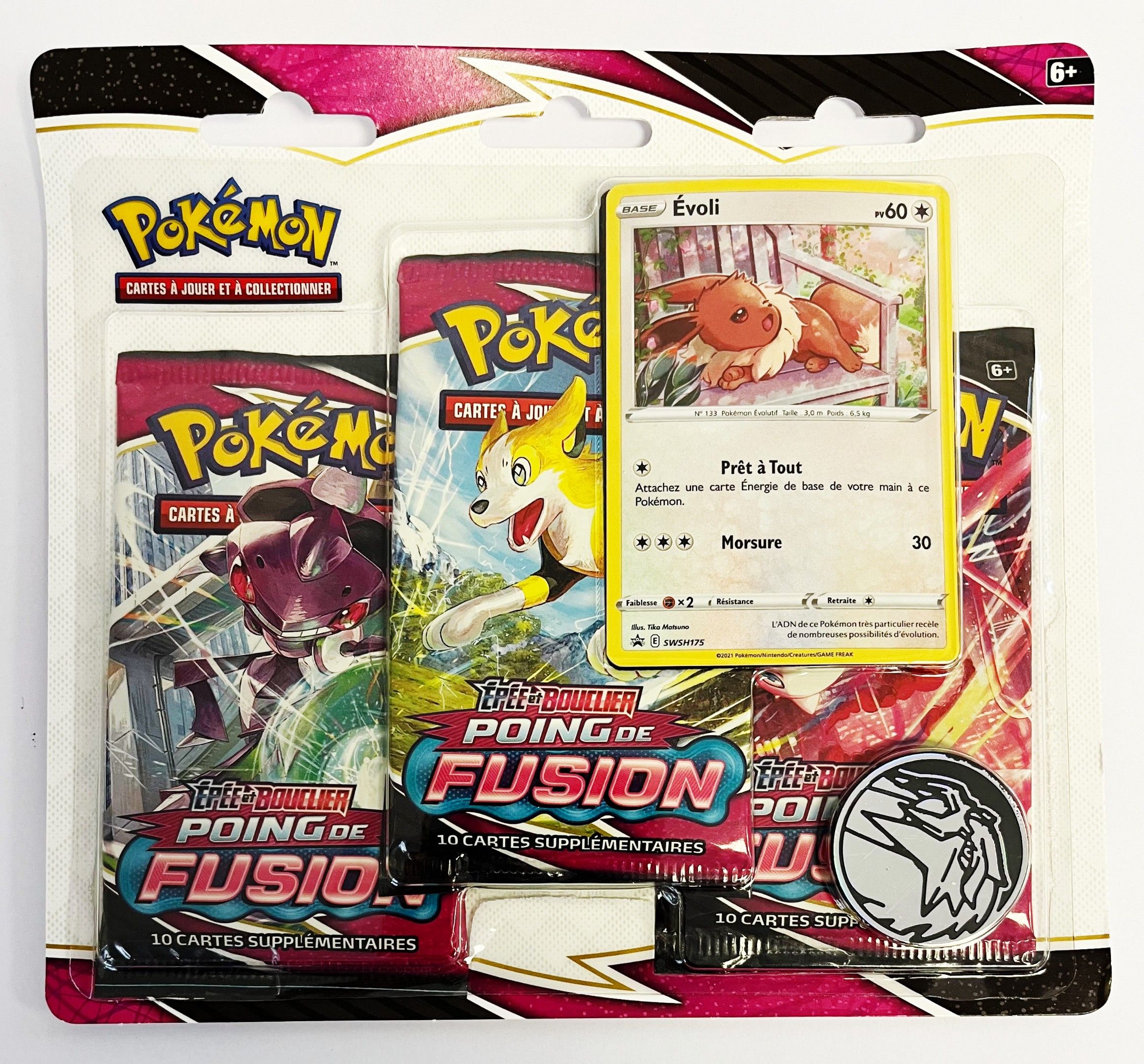 POKEMON. sword and buckle tripack. FUSION FIST. EVOLI.