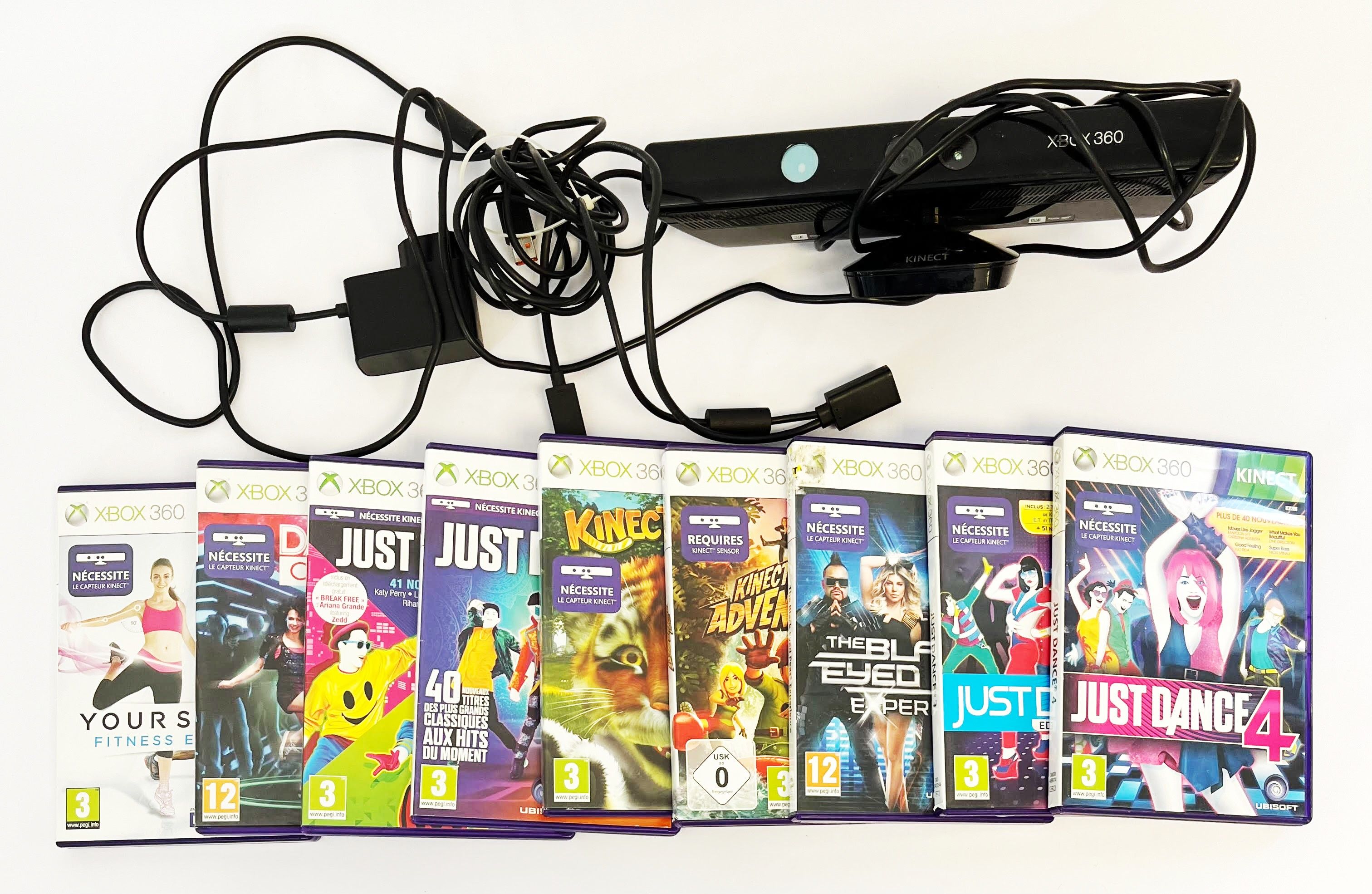 Xbox 360 set of 9 games including: Just Dance 3 Just Dance 4 and others. Includes Kinect xbox. Not guaranteed. Not tested