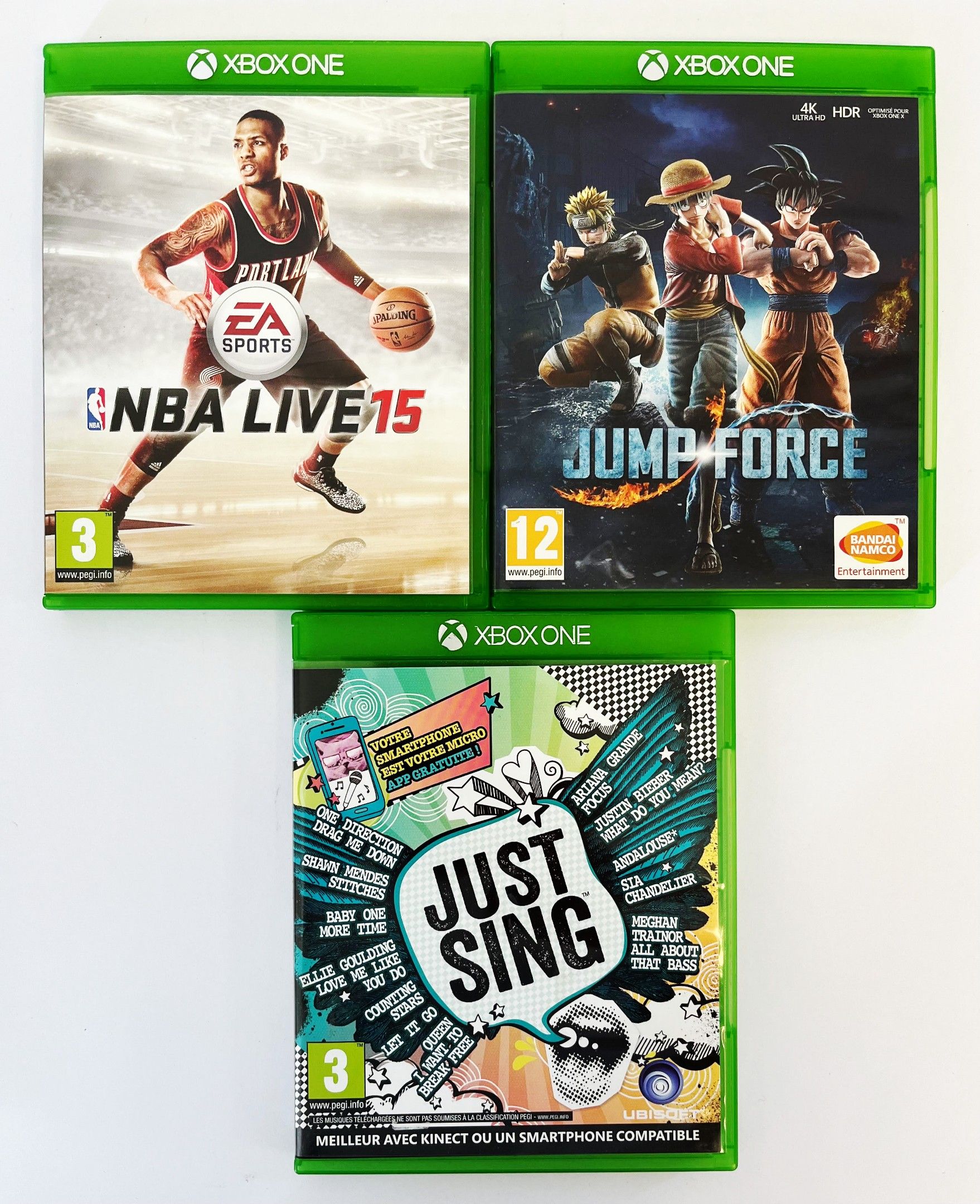 Xbox One 3-game bundle: Jump Force, Just Sing and NBA Live 15. Not guaranteed. Not tested