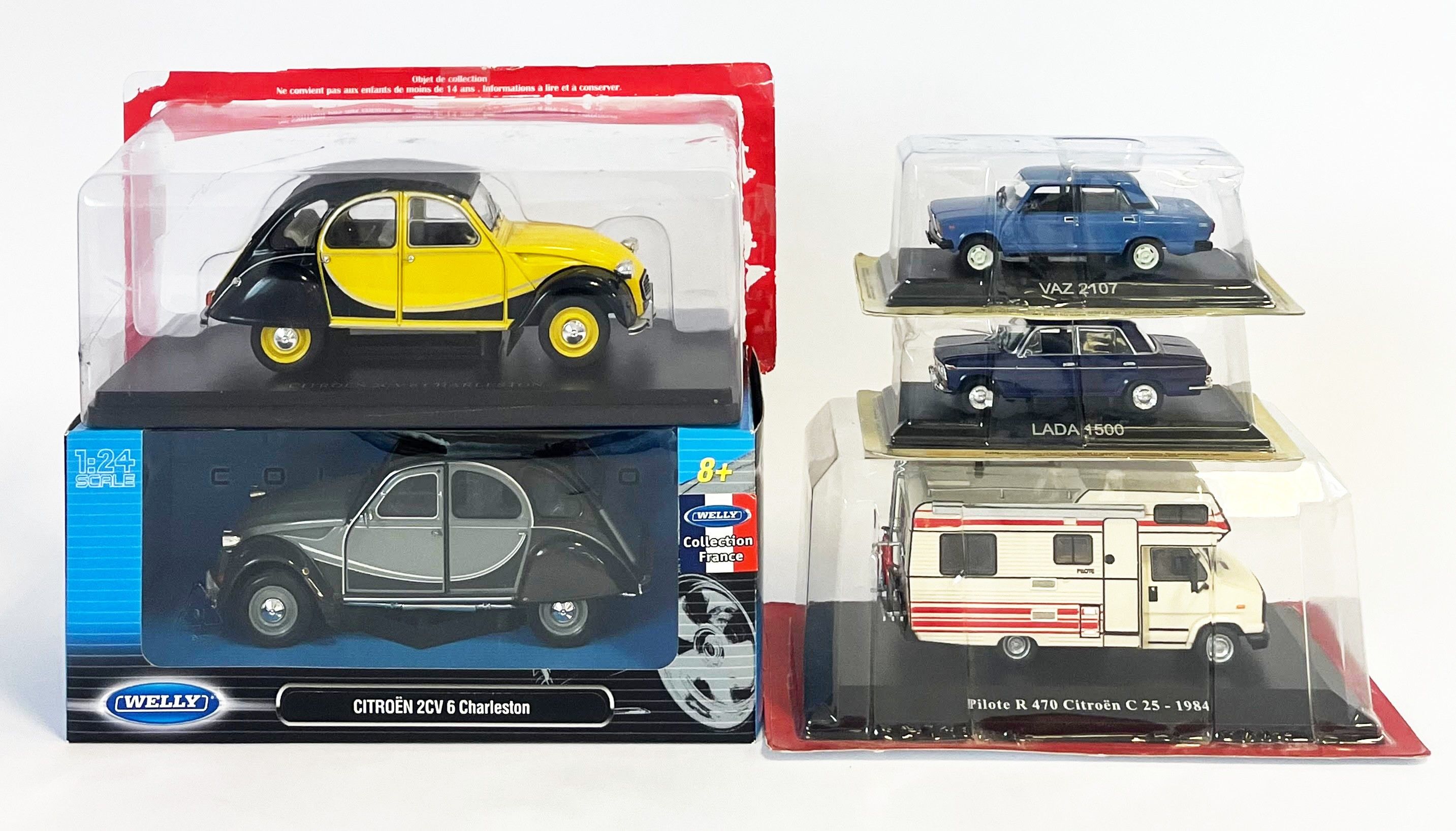 Lot of 5 miniature vehicles including Citroën 2CV, Camping c…