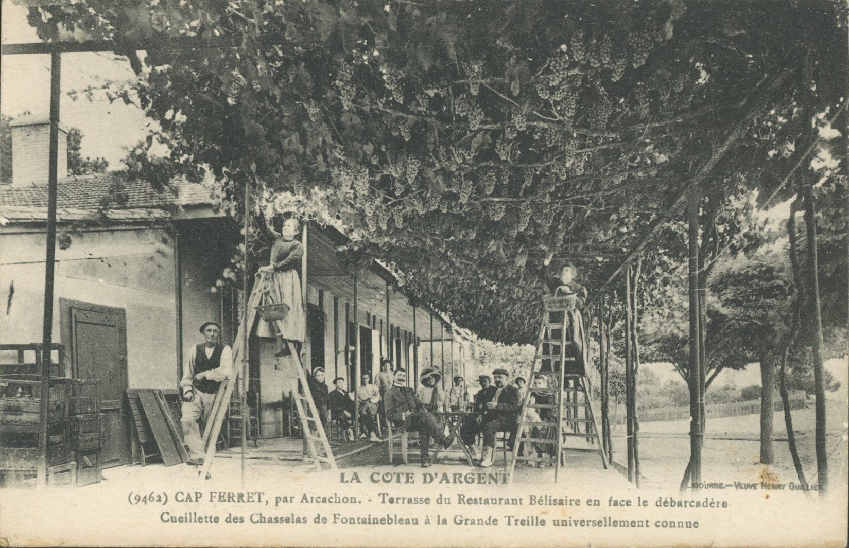 CPA: The Côte d'Argent - Cap Ferret (Gironde), by Arcachon - Terrace of the Bélisaire restaurant opposite the landing stage - Picking Fontainebleau Chasselas at the world-famous Grande Treille vineyard