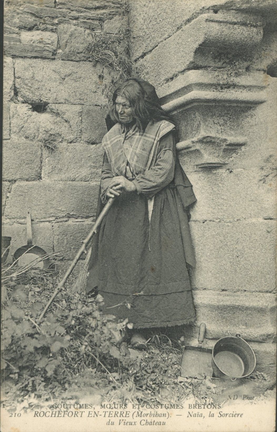 CPA: Breton Customs, Manners and Costumes - Rochefort En-Terre (Morbihan) - Naïa, the Witch of the Old Castle