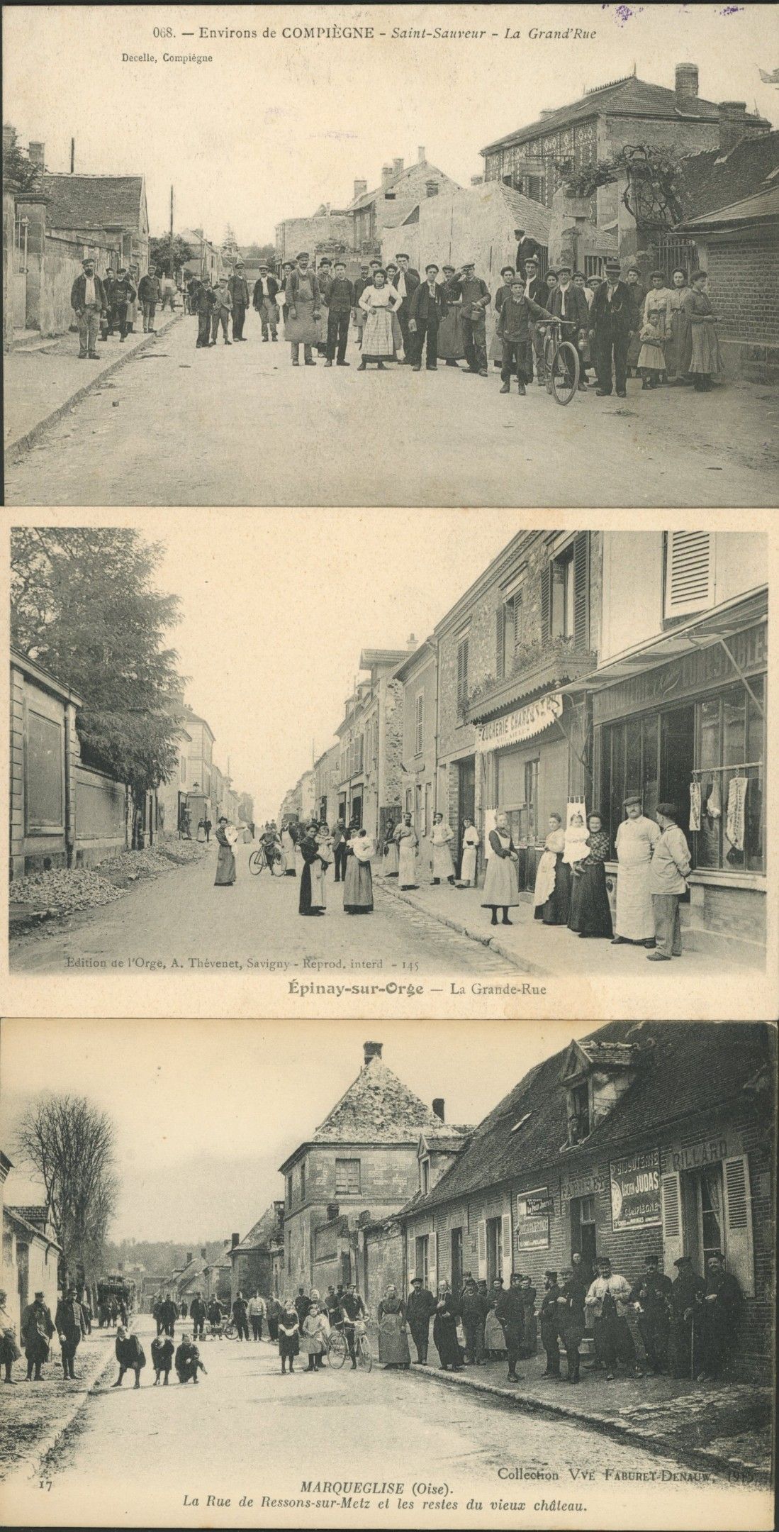 CPA: Set of 3 cards - Environs de Compiègne (Oise) Saint-Sauveur, La Grand'Rue - Marqueglise (Oise) La rue de Ressons-sur-Metz and the remains of the old castle - Epinay-sur-Orge (Essonne) La Grande-Rue