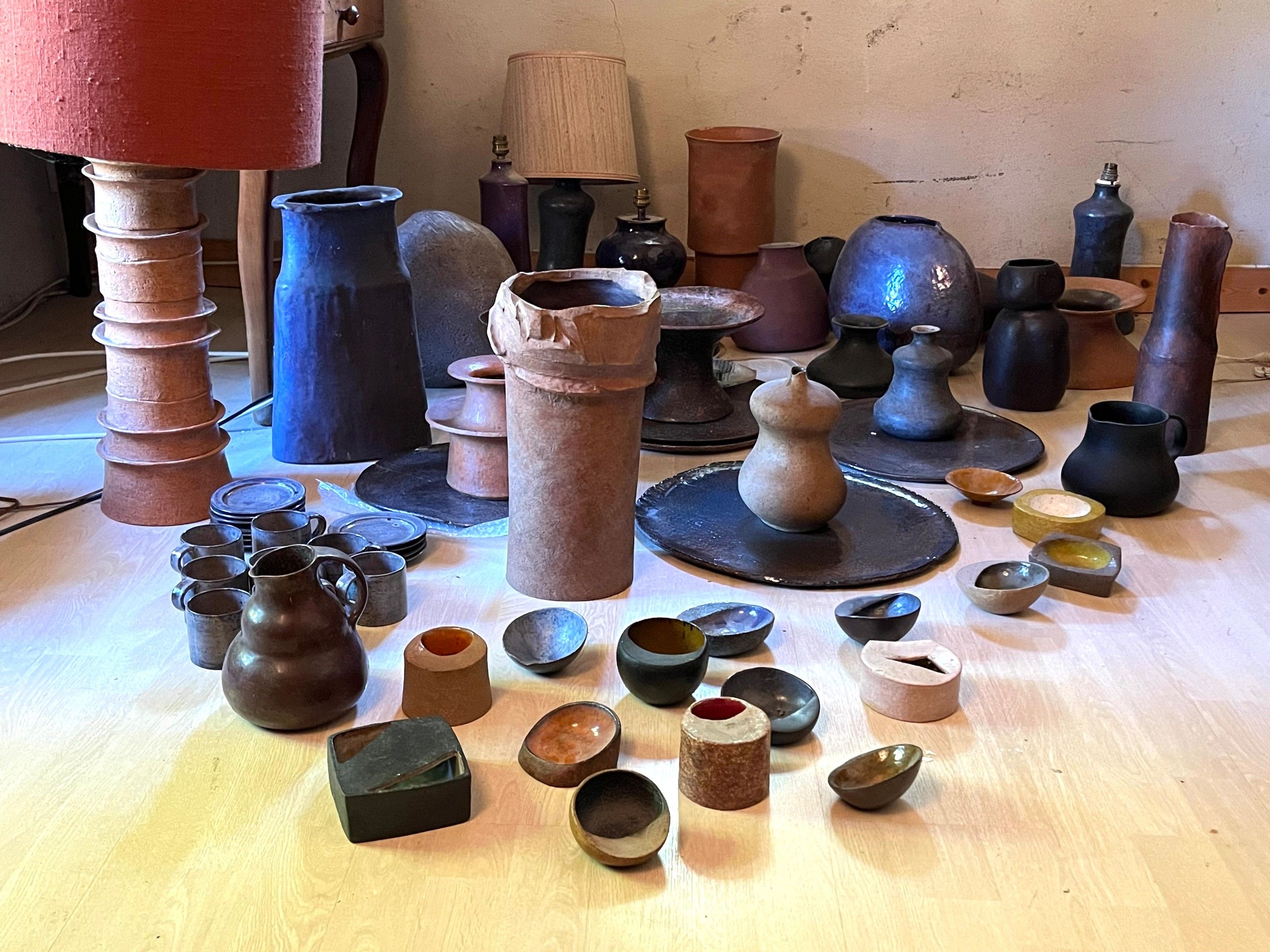 Collection of colombin-mounted ceramics by Claire DEBRIL (19…