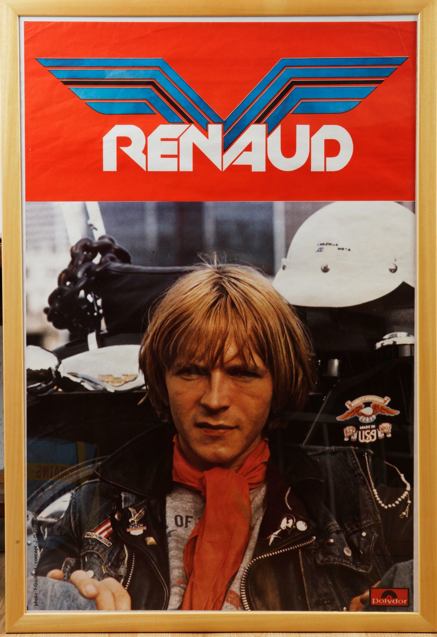 RENAUD: An original poster announcing the artist's concerts in 1977. Format 80x120 cm. Polydor. Rare framed poster.