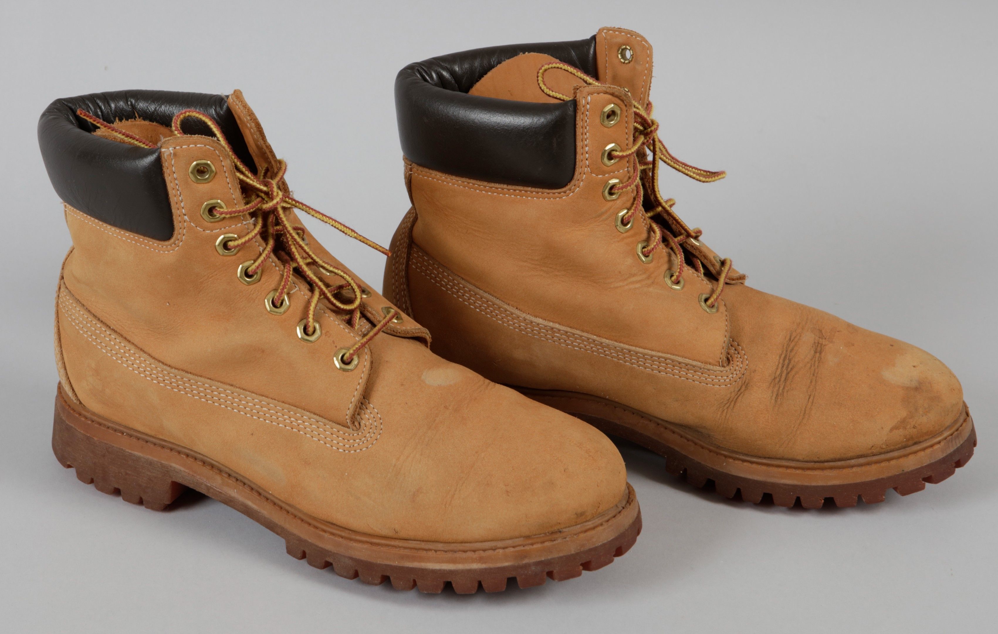 JOHNNY HALLYDAY: A pair of Timberland shoes bought and worn by the rocker in the 90s. Nice condition.