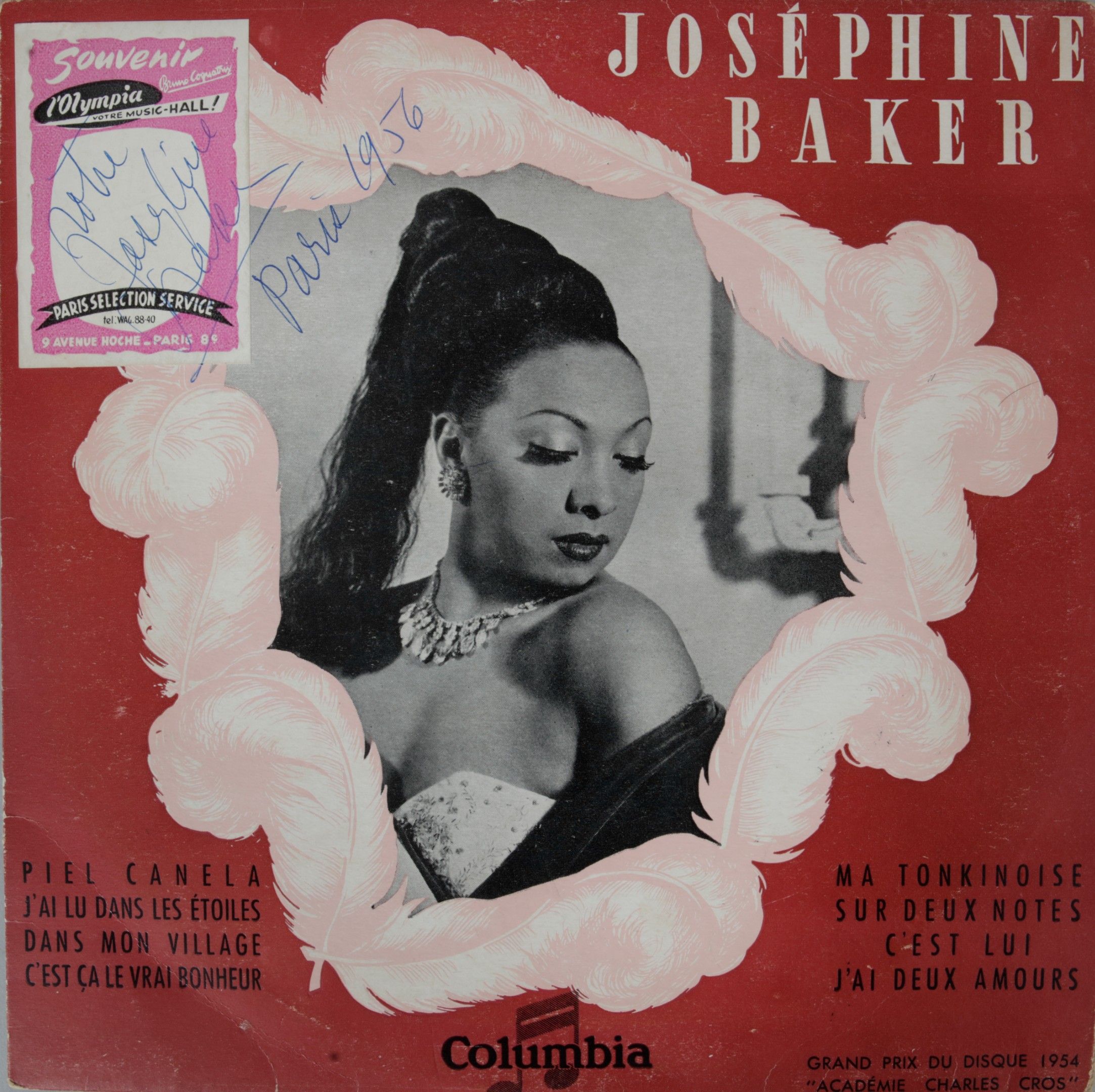 JOSEPHINE BAKER: An original 25 cm, 8-track record, published by Columbia in 1954 and autographed by the artist backstage at the Olympia in March 1956. Very rare. Nice
