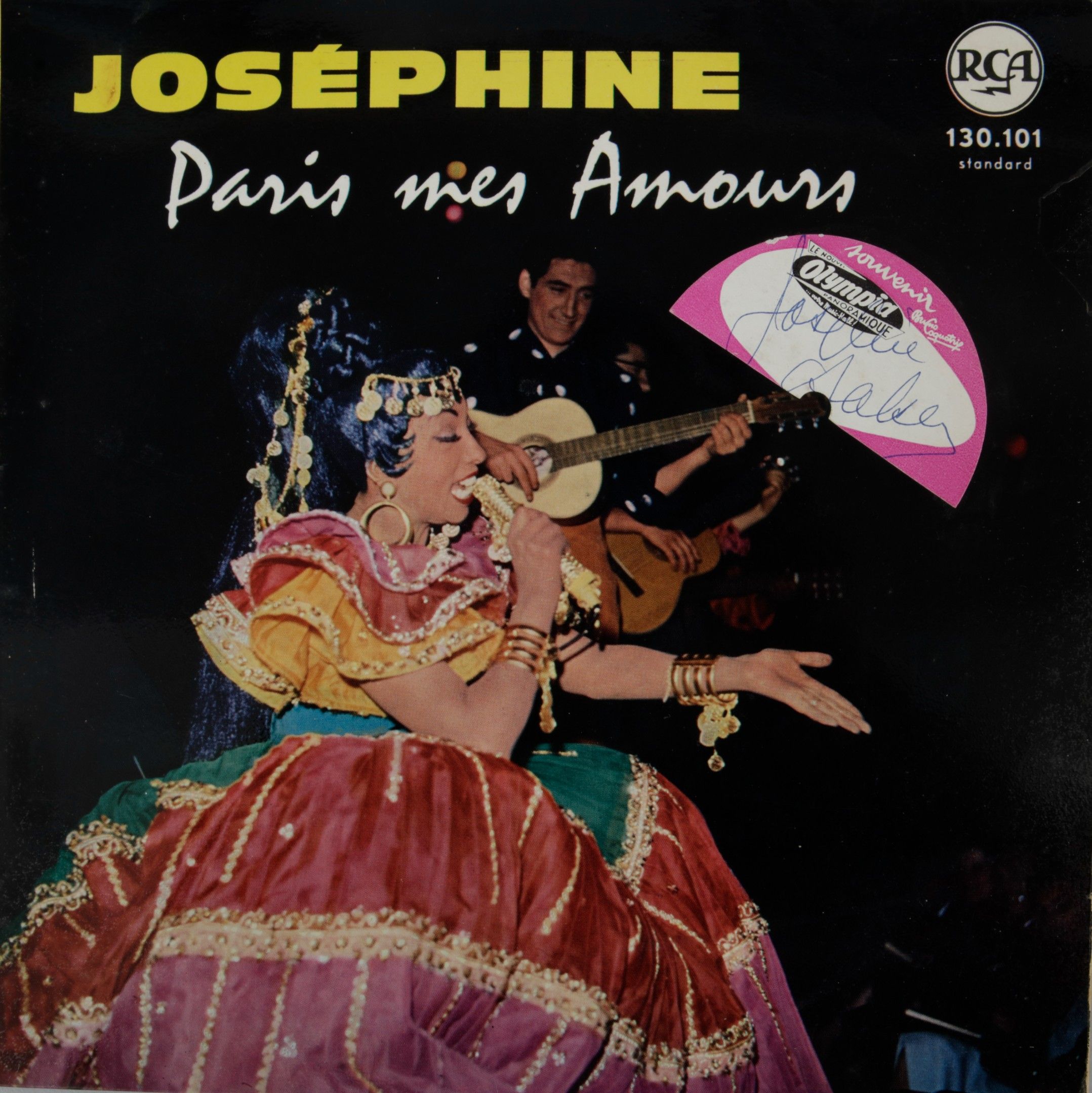 JOSEPHINE BAKER: An original 25 cm, 7-track record, published by RCA in 1959 and autographed by the artist backstage at the Olympia in October 1959. Fine condition.