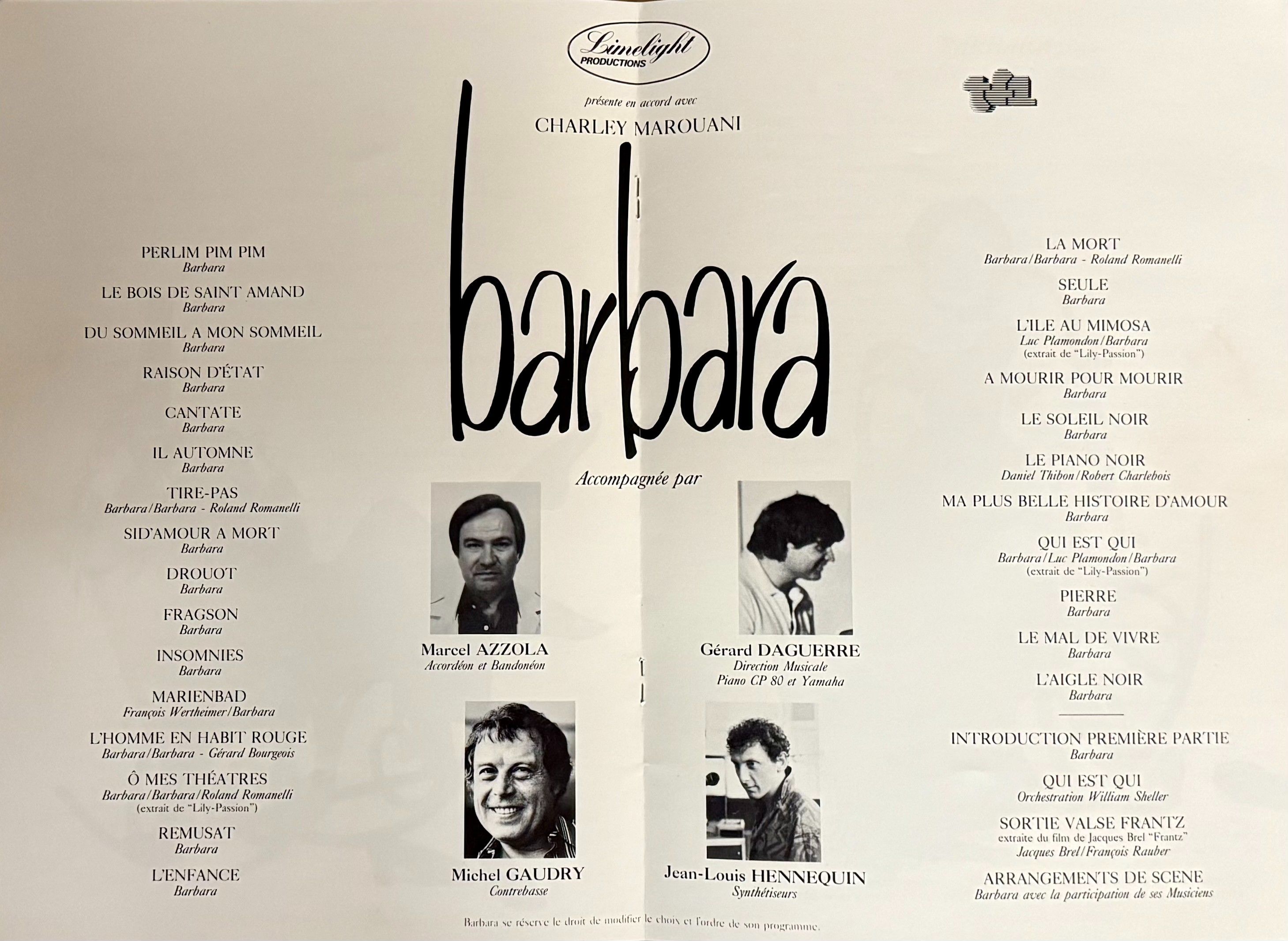 BARBARA: An original programme and 2 concert tickets for Tue…