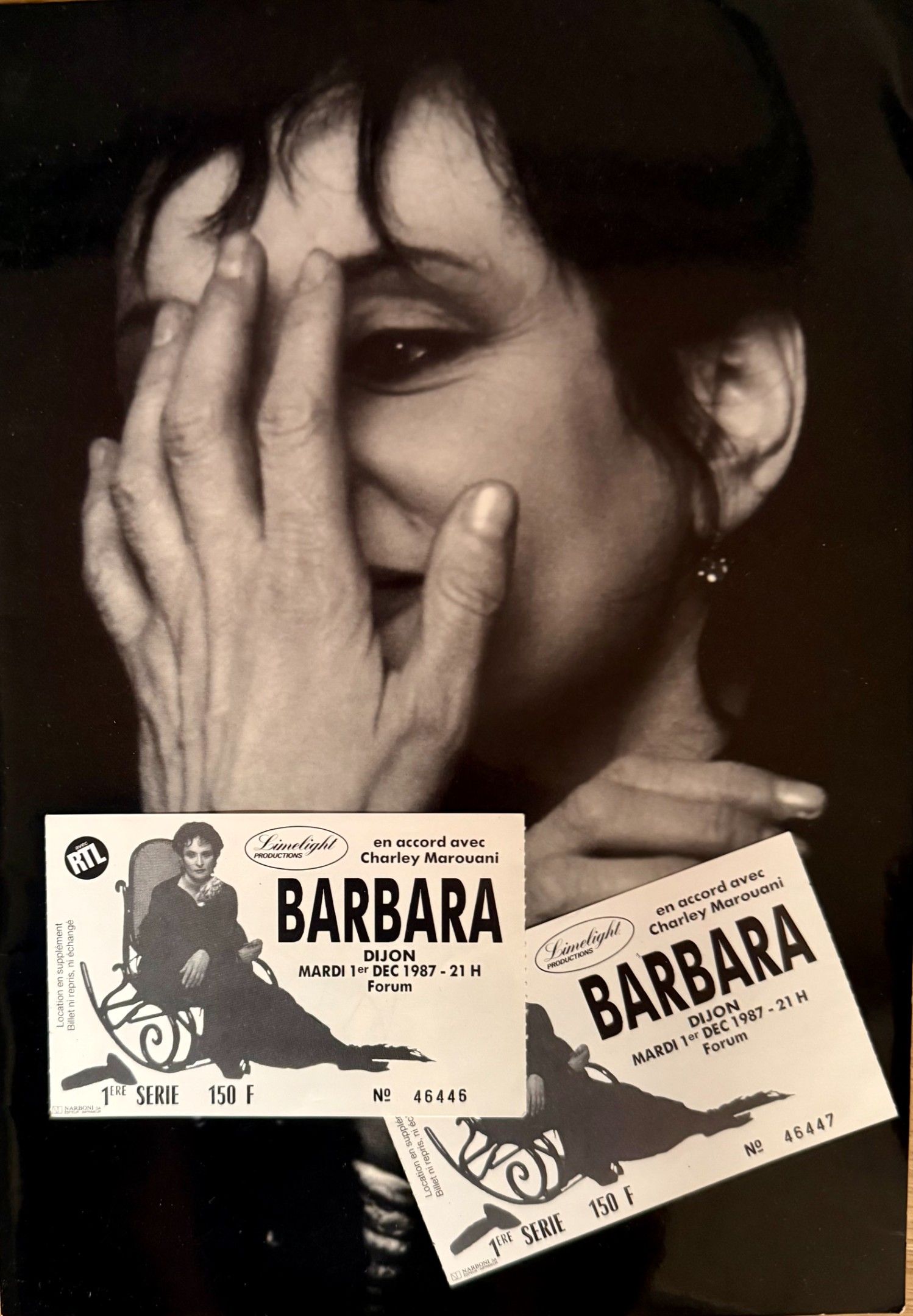 BARBARA: An original programme and 2 concert tickets for Tuesday 1 December 1987 at the Forum in Dijon. Good condition.