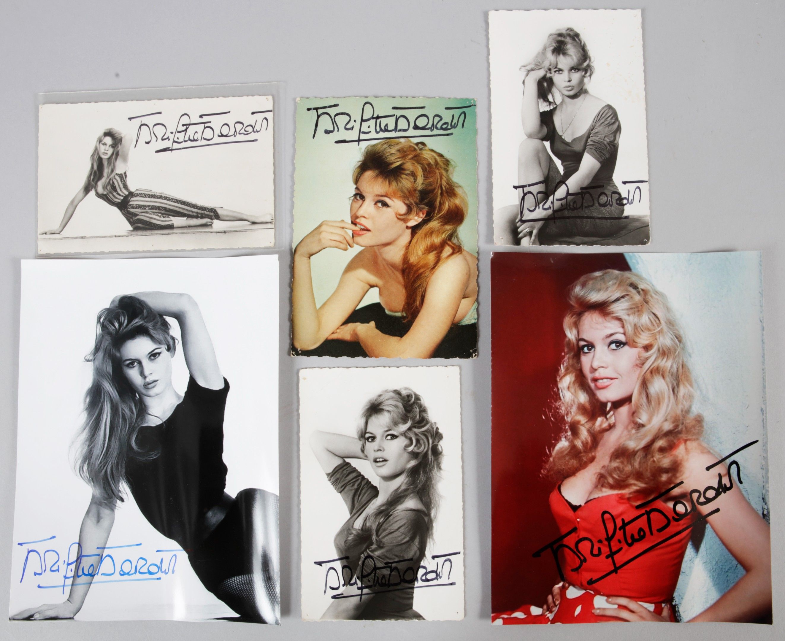 BRIGITTE BARDOT: a set of 4 autographed promotional postcards and 2 autographed photographic prints by the artist. All formats. Fine condition and rare documents.