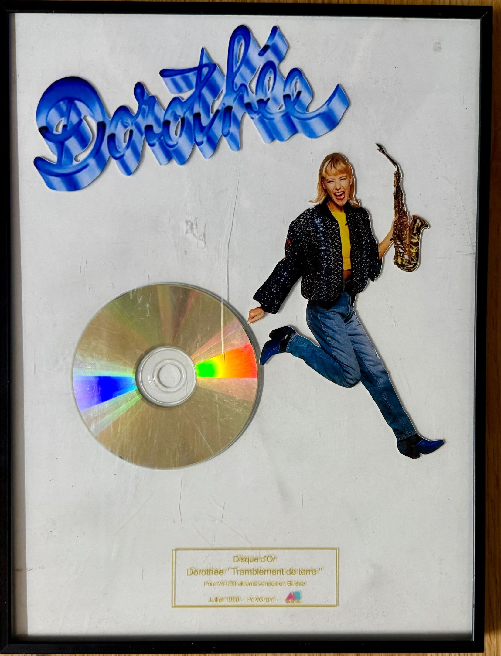 DOROTHÉE (1955): A gold disc for the album "Tremblement de terre" sold 25,000 copies in Switzerland in July 1990. PolyGram - Disques AB. Format 31x41 cm.