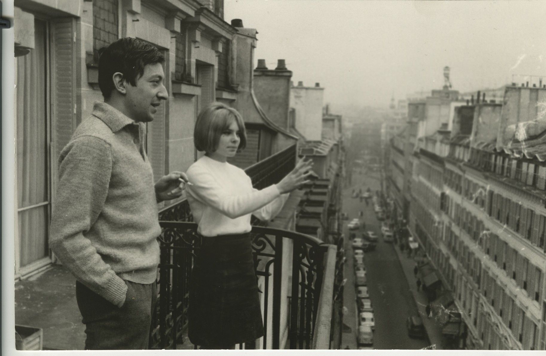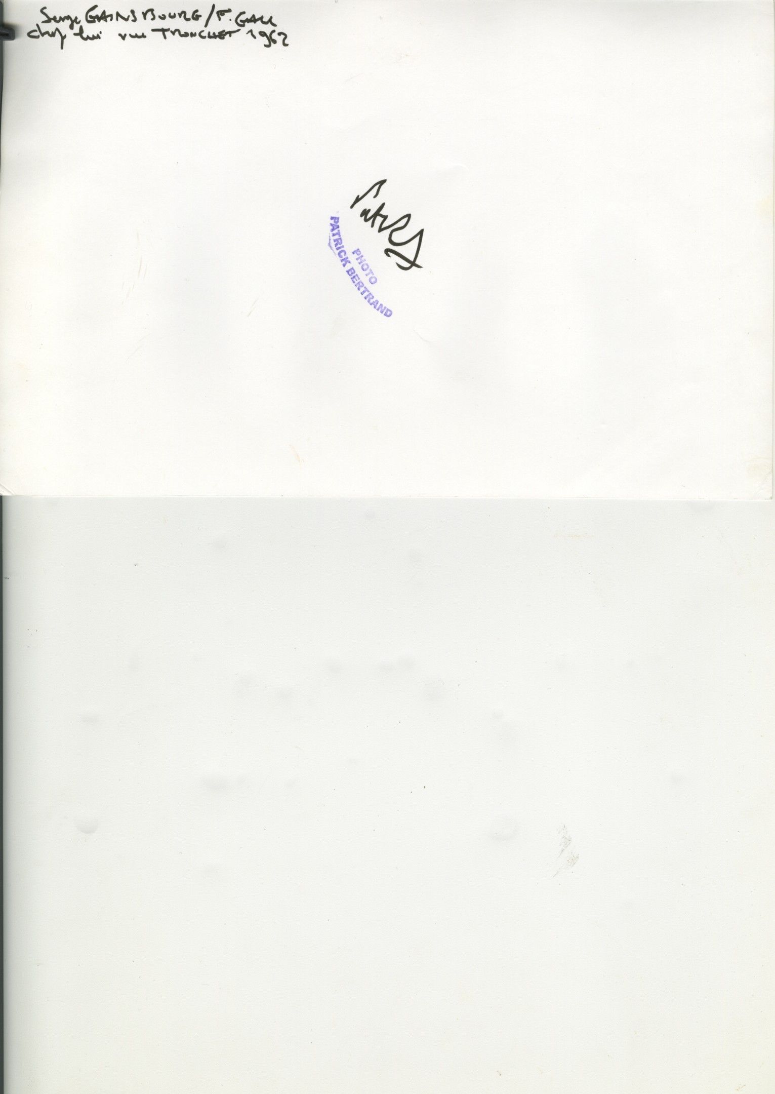 SERGE GAINSBOURG: An original photographic print by Patrick Bertrand with the photographer's stamp and signature on the back and the words: "Serge Gainsbourg / France Gall, chez lui rue Tronchet 1962". Format 20x31 cm. Rare document.