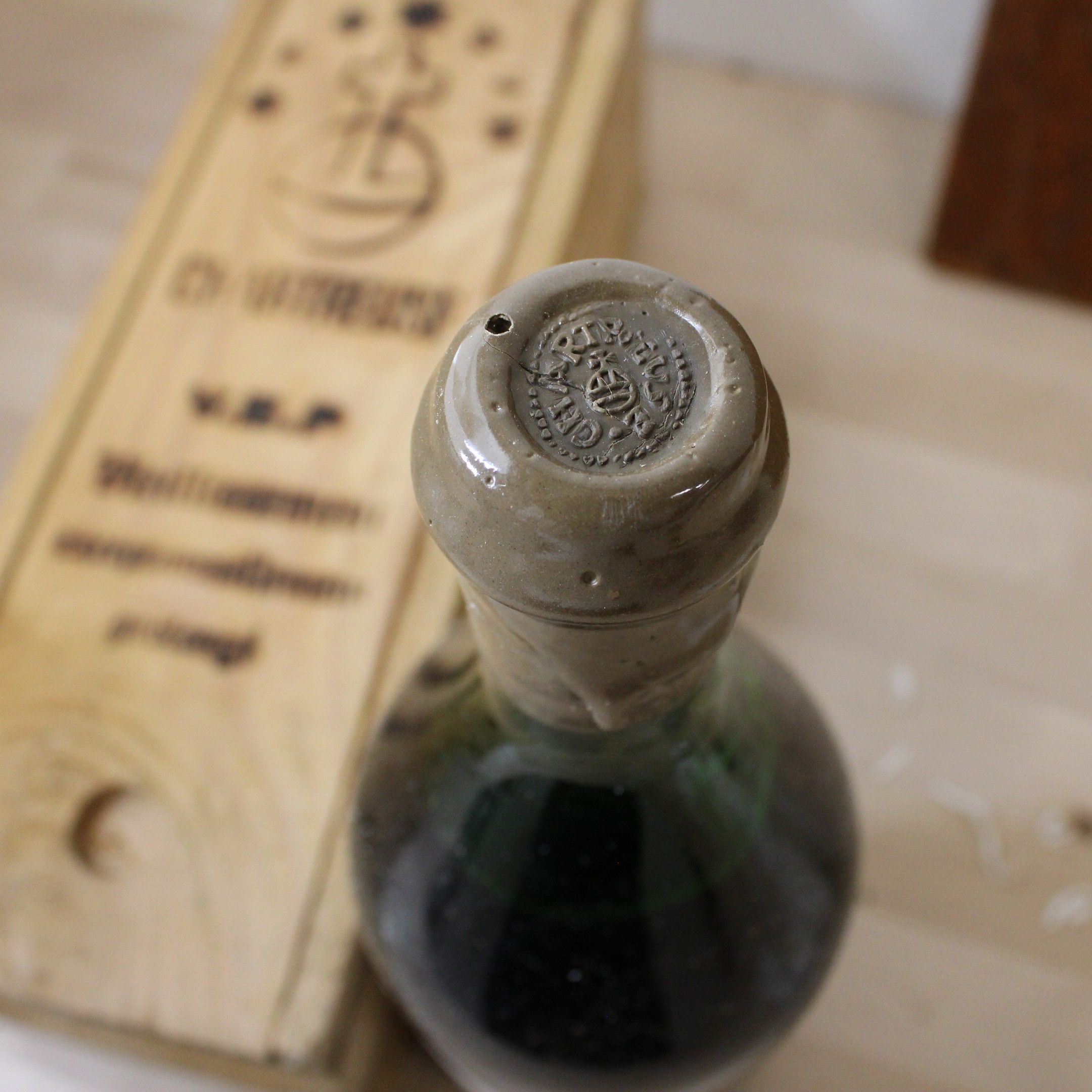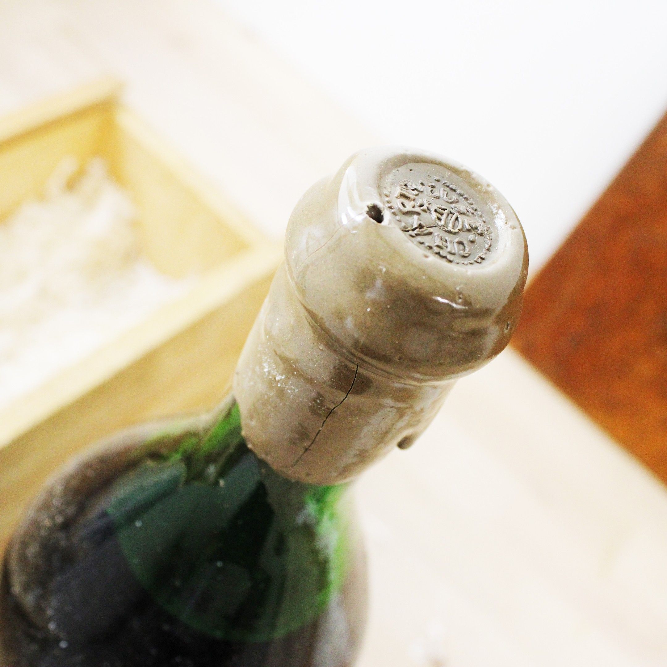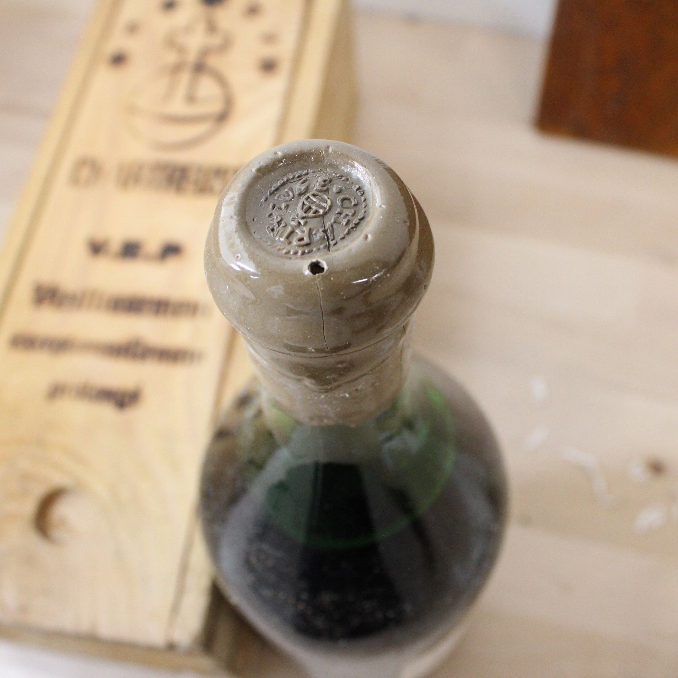 Observations : Label slightly scorched, cork wax slightly damaged. Spare stopper with leaflet.