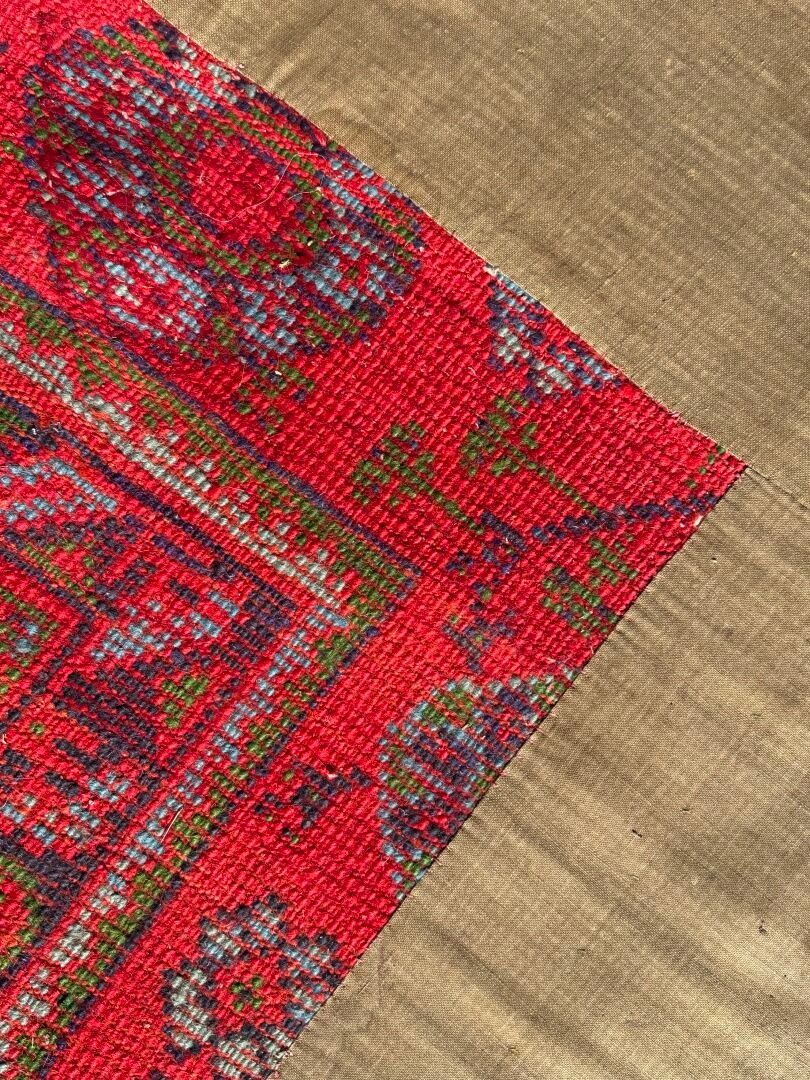 Premium RUG, Smyrna, circa 1930, red background, turquoise decoratio…