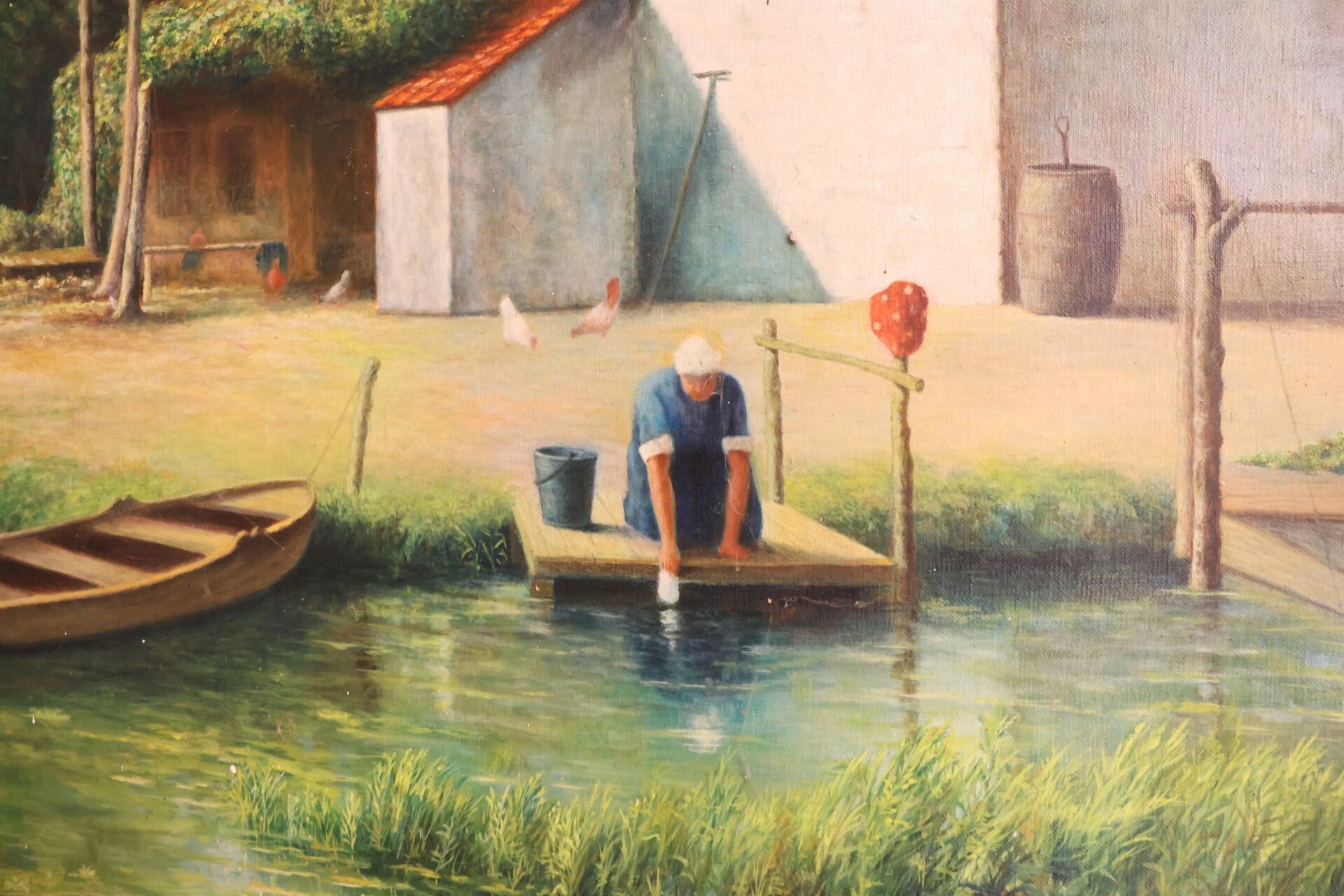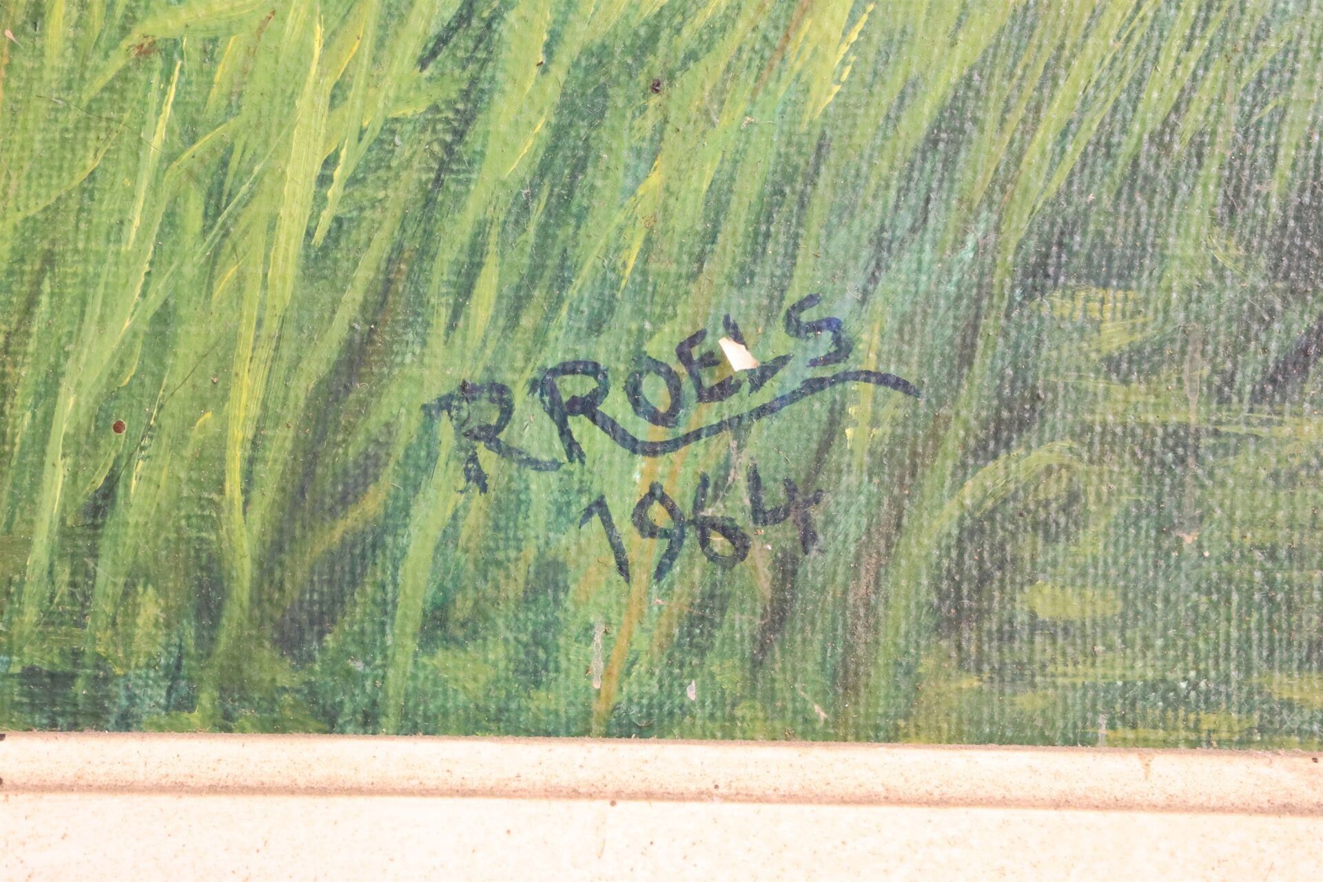R. ROELS "Lavandière" Oil on canvas signed and dated 1964 lower right 80 x 126 cm accidents