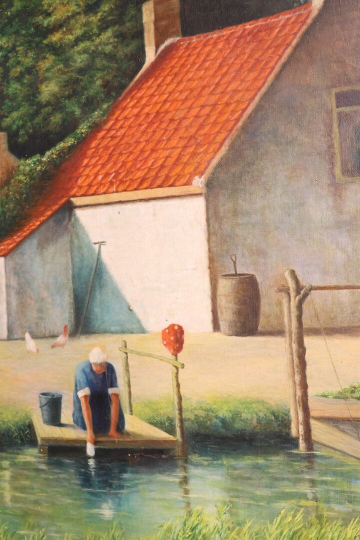 R. ROELS "Lavandière" Oil on canvas signed and dated 1964 lo…