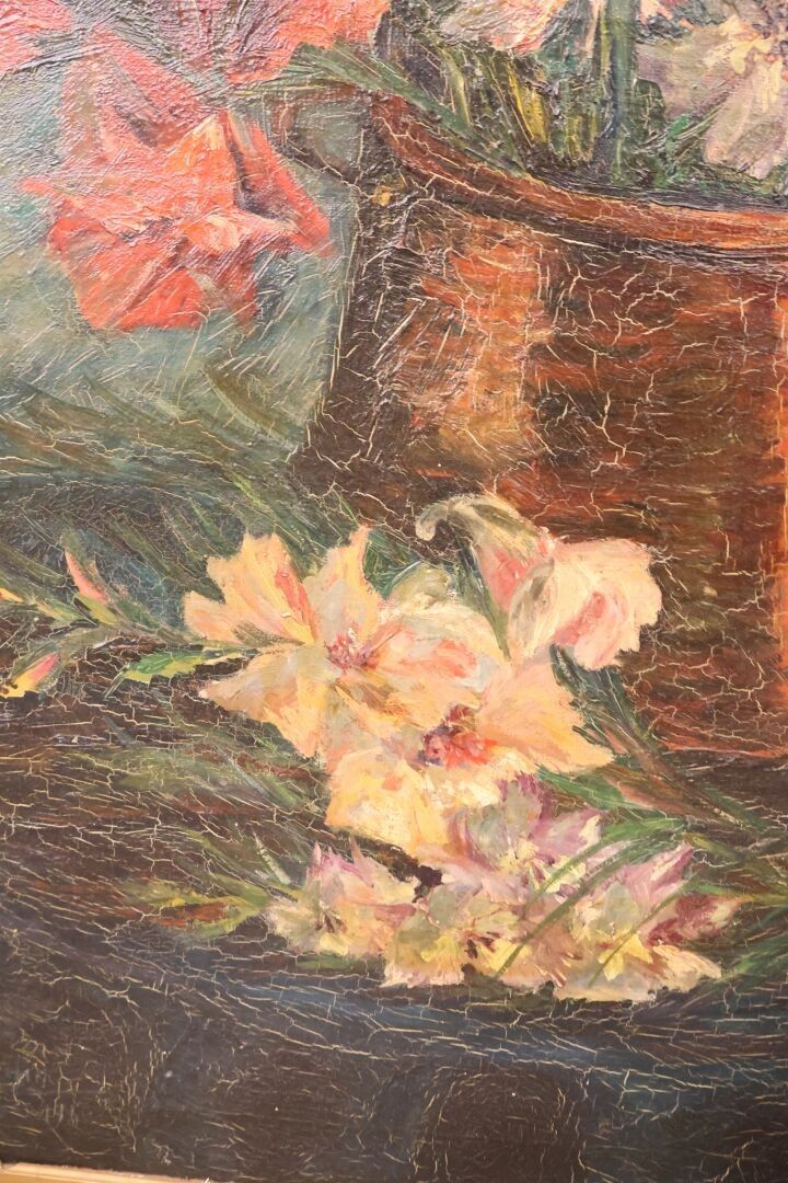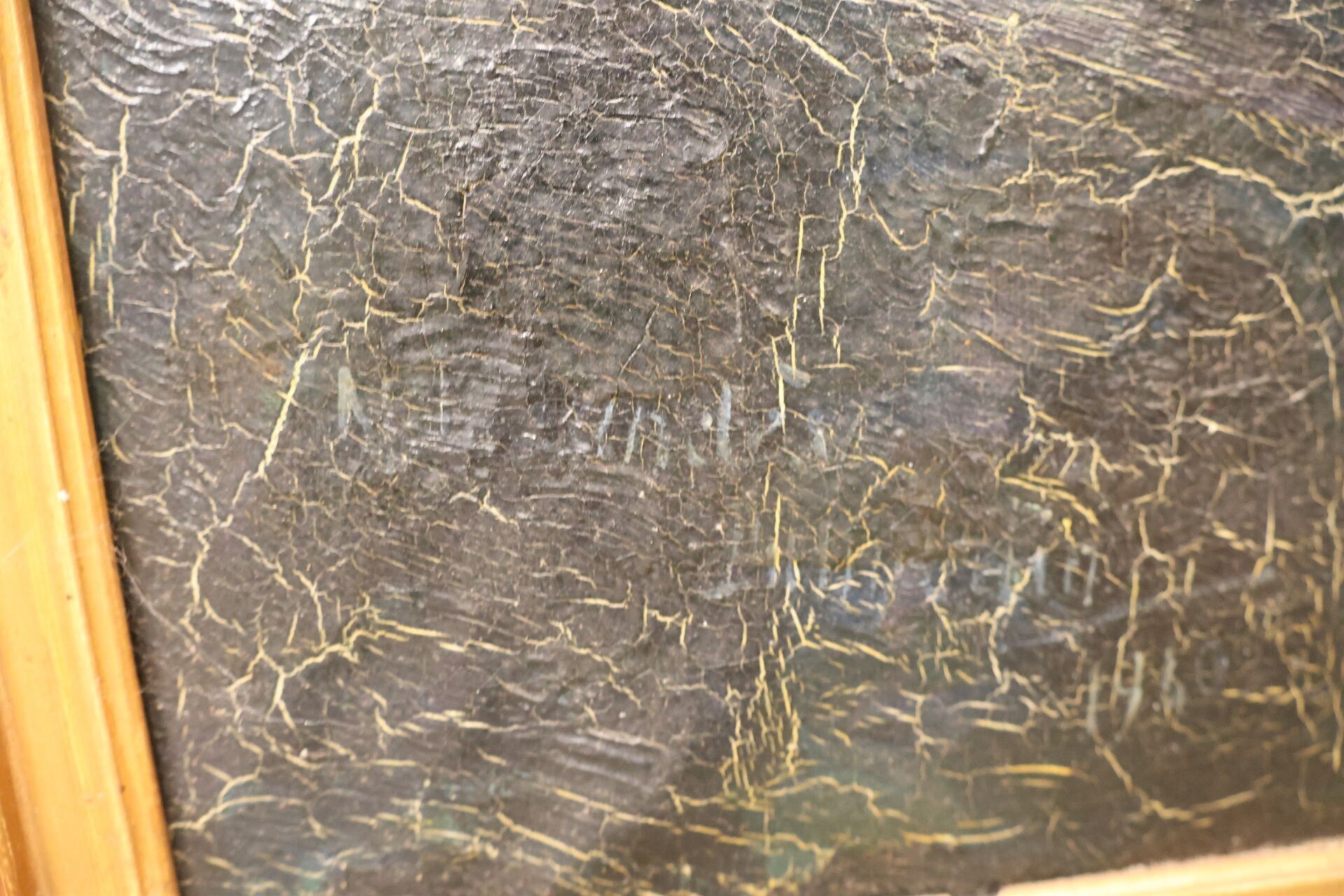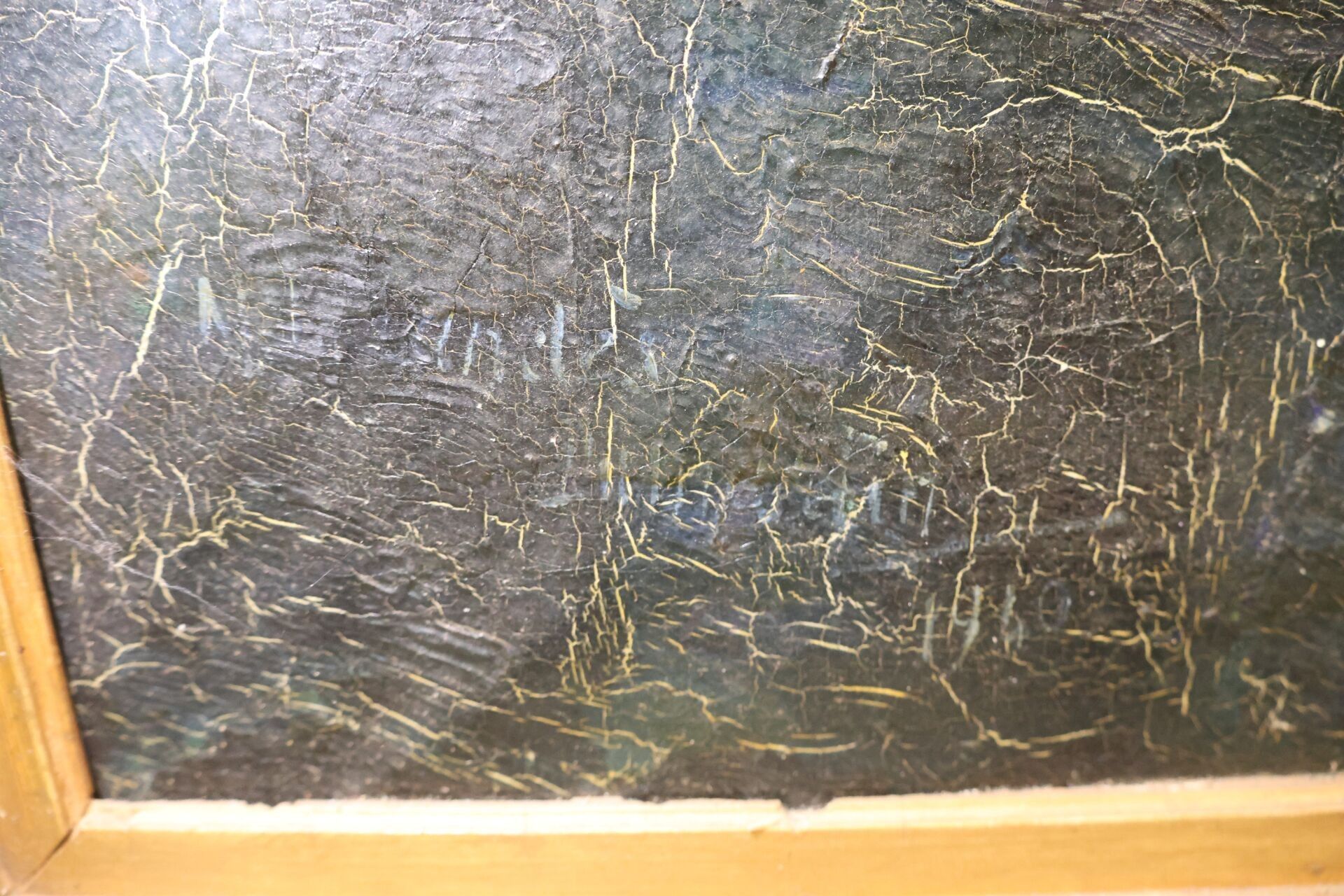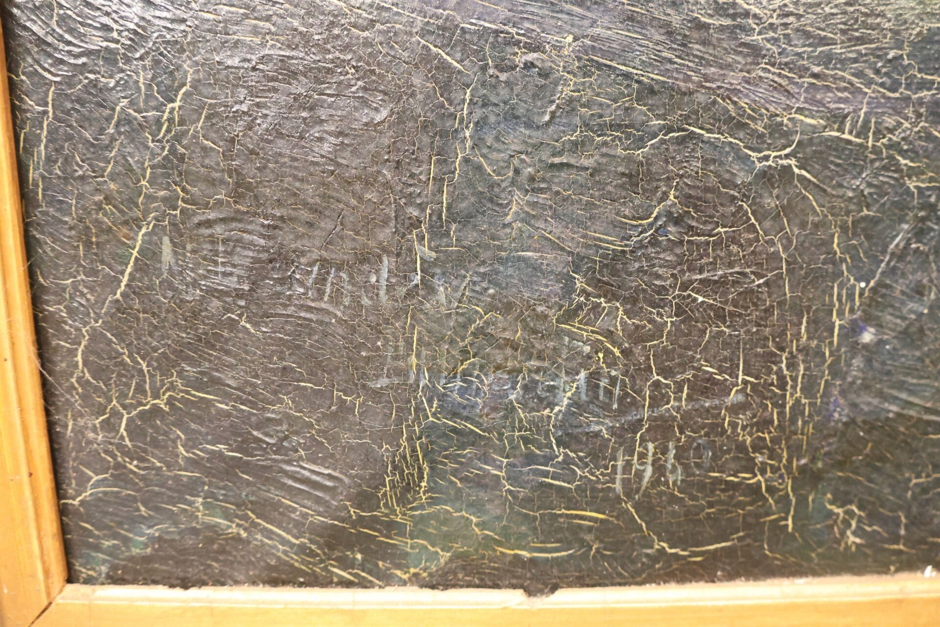 Oil on canvas signed and dated lower left but very difficult to read. Damage 95 x 72 cm