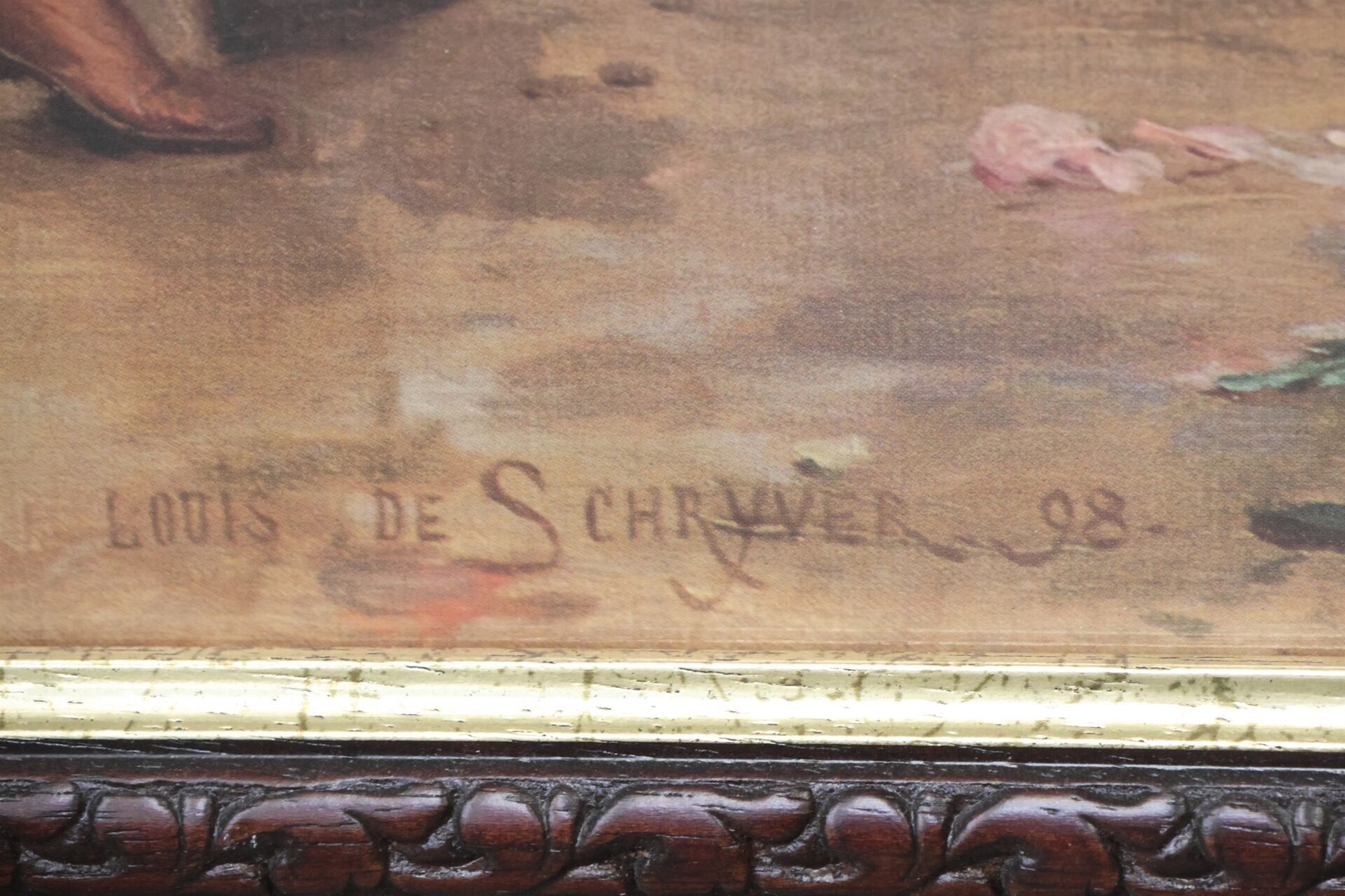After Louis de SCHRYVER "La marchande de fleurs" Framed reproduction 49 x 75 cm