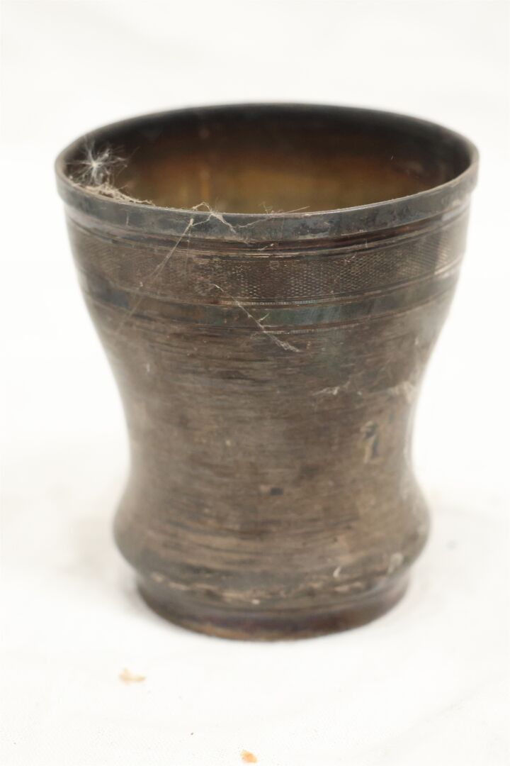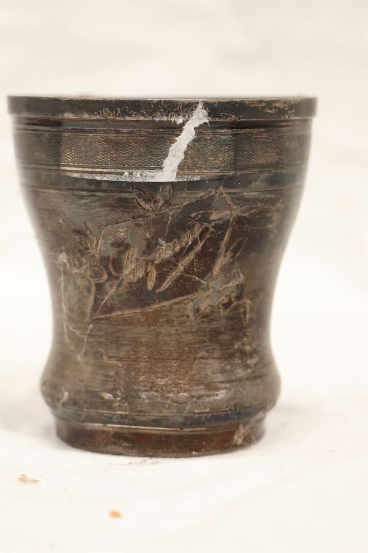 A silver tumbler engraved with the name Suzanne in a floral cartouche. Height: 7.5 cm - Diameter: 6.5 cm - Weight: 59 grs