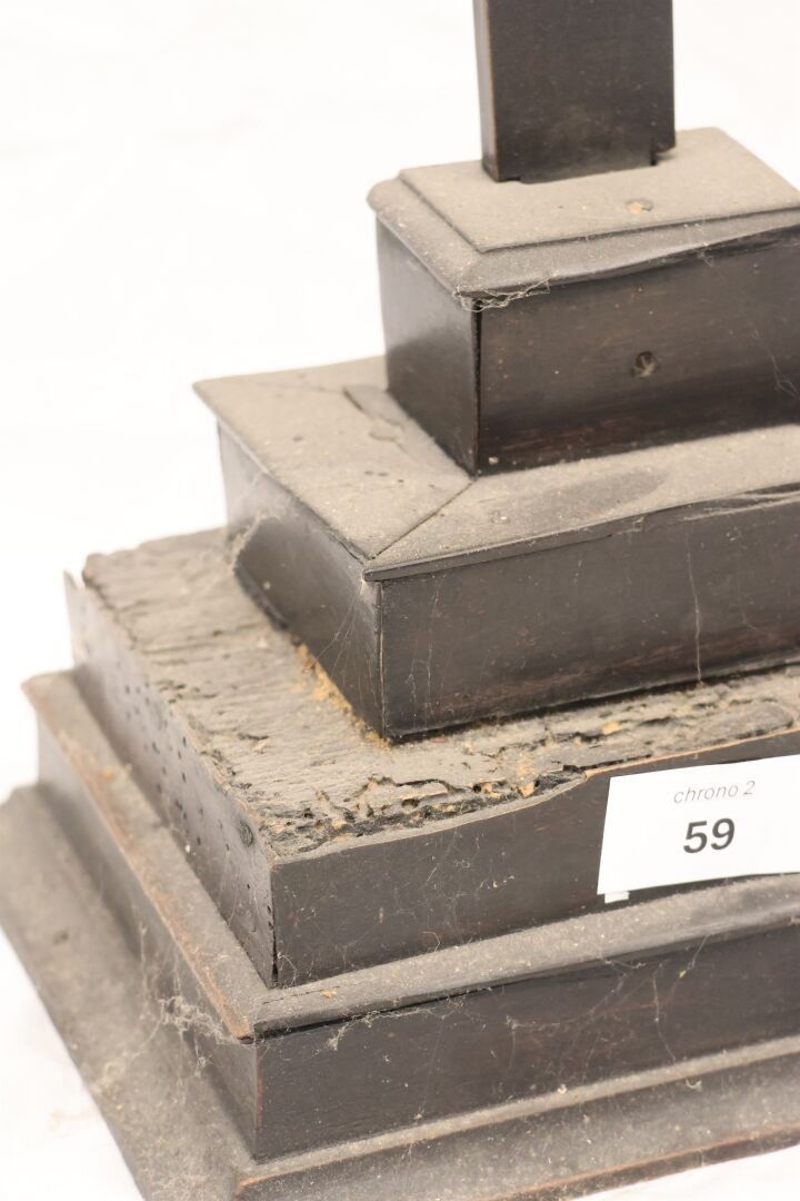 Cross in blackened wood. Damage to the base. Height: 62 cm.