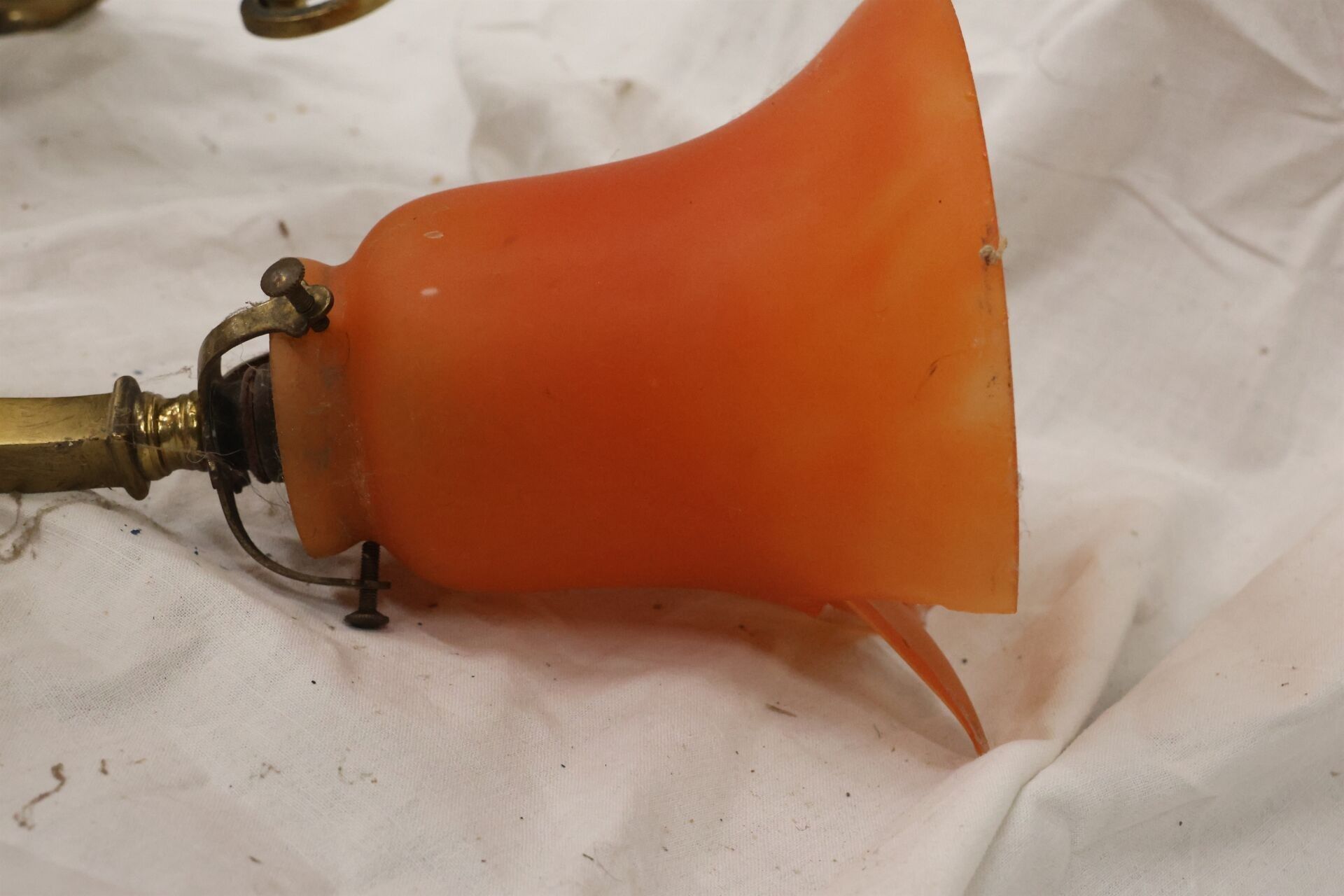 Brass or bronze two-light wall lamp, 20th century. Damage 30 cm deep
