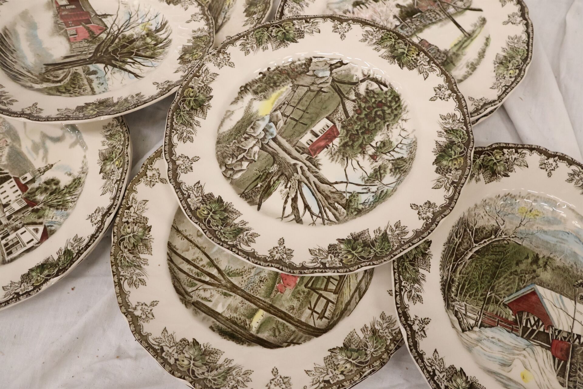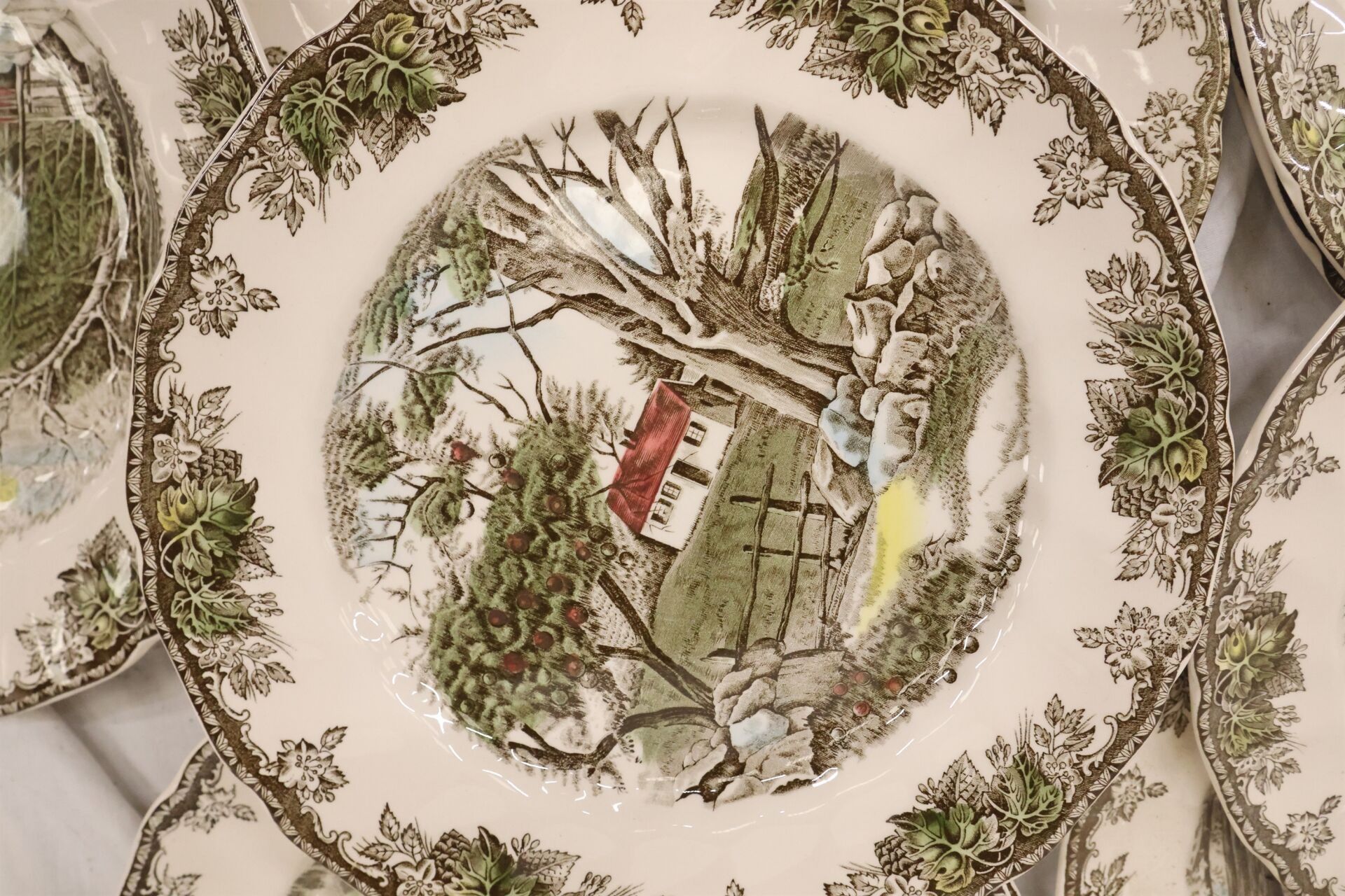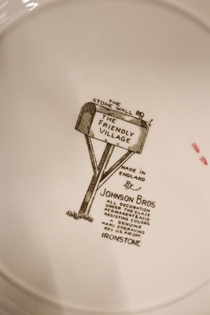 Set of thirteen polychrome earthenware plates "The Stone Wall - The friendly Village by Johnson Bros" diam 26.5 cm